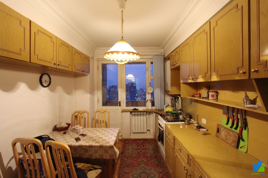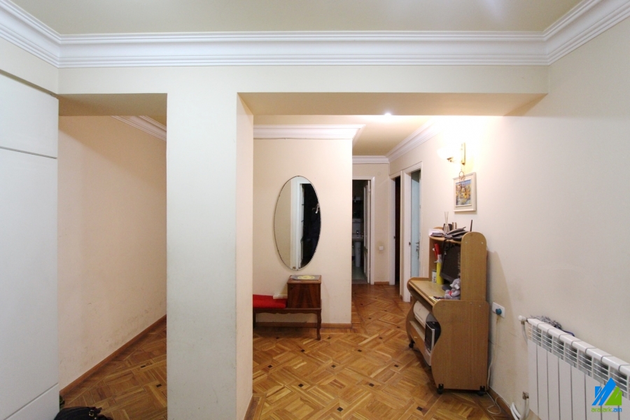 An apartment for sale/ rent in Vagharshyan Street (near Parma Supermarket). The rooms' quantity is 4 (1 hall and 3 bedrooms). The apartment is former newly renovated and is located on the 10th floor of the 16-storey panel building, that is stationed on the 1st line. the entrance door is iron-made, the windows are wooden and the floor is covered by parquet. The bathroom is separate and is modern tiled, the electric wires and pipes are newly changed. The apartment has a balcony, storage room, built-in closets, heating system and is supplied with constant water and gas. The entrance is form the yard. The view is directed towards yard and the city.