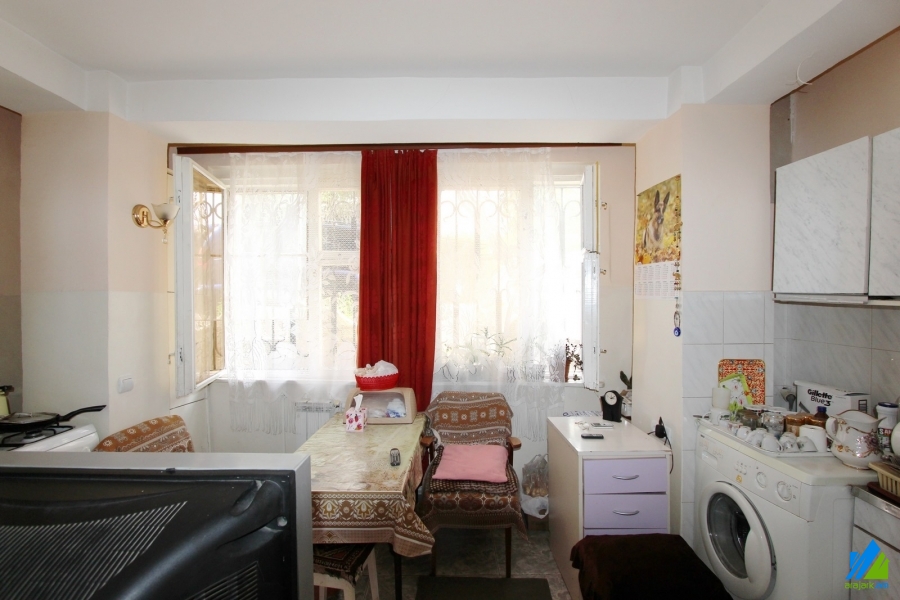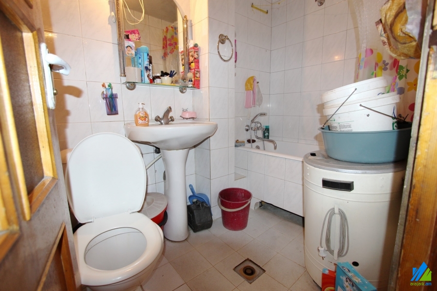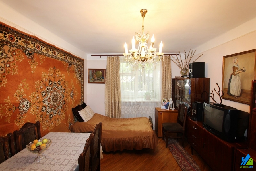 Commercial area for sale in Vardanants Street (Vardanants-Hanrapetuyan Crossroad). The rooms' quantity is 2(1 bedroom and 1 hall). The area is cosmetically renovated and is located on the high-rise ground floor of the 5-storey stone building, that is stationed on the first line. The entrance door is iron-made, the windows are wooden, the floor is covered by parquet, laminate and is tiled. The bathroom is combined and tiled, the electric wires and pipes are newly changed. The area has a storage room, built-in closets, three-phase electricity, heating system and is supplied with constant water and gas. 15.4 sq.m. of the total surface is used as a commercial area. The entrance is from the street and yard. The view is directed towards Hanrapetutyan Street and yard.