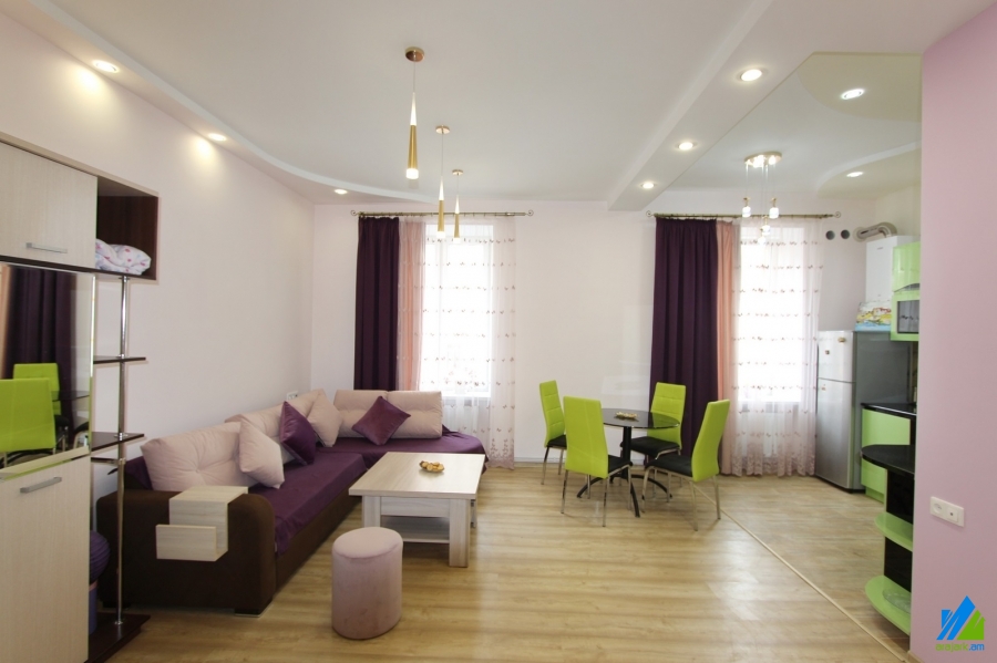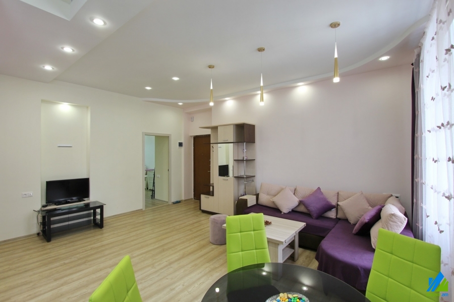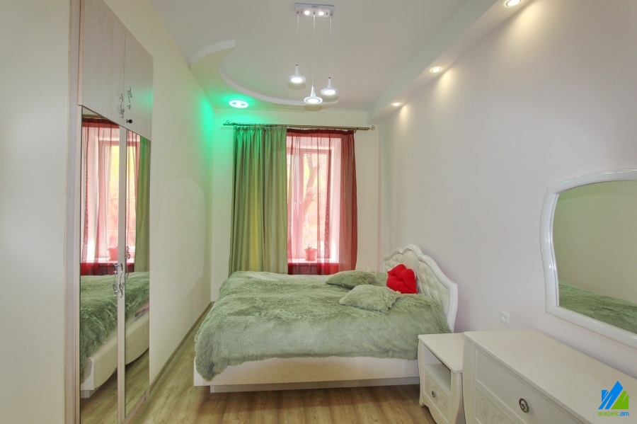 Օրավարձով է տրվում 2 սենյականոց բնակարան Բաղրամյան պողոտայում (Ամերիկյան համալսարանի հարևանությամբ)`4 հարկանի քարե շենքի բարձր առաջին հարկում։ Բնակարանը կապիտալ վերանորոգված է, առաջին գիծ։ Մուտքի դուռը՝ երկաթյա, պատուհանները՝ եվրո, հատակը՝ լամինատ։ Սանհանգույցը՝ համակցված, նորաոճ սալիկապատ, էլ․ լարերը և խողովակները՝ փոխված։ Ունի ջեռուցման համակարգ, խոհանոցի կահույք, ներկառուցված պահարան, մշտական ջուր և գազ։ Մուտքը՝ բակից։ Տեսարանը՝ դեպի Բաղրամյան պողոտա և բակ։