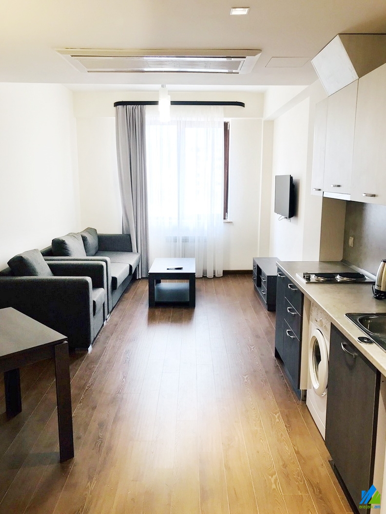 Վարձով է տրվում 1 սենյականոց բնակարան Բուզանդ փողոցում (Հանրապետության հրապարակի հարևանությամբ)՝ 14 հարկանի նորակառույց շենքի 9-րդ հարկում։ Բնակարանը նորաոճ վերանորոգված է, առաջին գիծ։ Մուտքի դուռը՝ երկաթյա, պատուհանները՝ եվրո, հատակը՝ լամինատ, սալիկապատ։ Սանհանգույցը՝ համակցված, նորաոճ սալիկապատ։ Ունի ներկառուցված պահարան, խոհանոցի կահույք, ջեռուցման համակարգ, մշտական ջուր և գազ։ Մուտքը՝ փողոցից։ Տեսարանը՝ դեպի բակ։