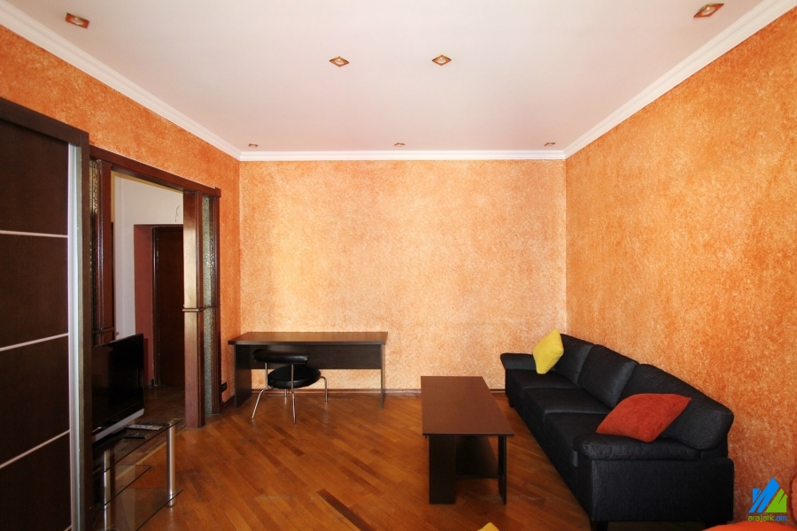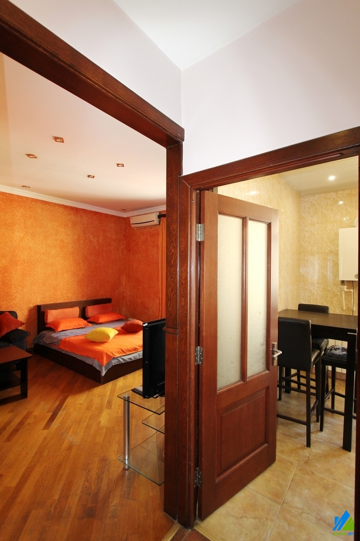 Վարձով է տրվում 1 սենյականոց բնակարան Հանրապետության փողոցում՝ 5 հարկանի քարե շենքի 4-րդ հարկում։ Բնակարանը կապիտալ վերանորգված է, առաջին գիծ։ Մուտքի դուռը՝ երկաթյա, պատուհանները՝ եվրո, հատակը՝ մանրահատակ, սալիկապատ։ Սանհանգույցը՝ համակացված, սալիկապատ, էլ․ լարերը և խողովակնորը՝ փոխված։ Ունի կախովի պատշգամբ, խոհանոցի կահույք, օդորակիչ, ջեռուցման համակարգ, տաքացվող հատակ։ Տրվում է կահույքի և տեխնիկայի հետ միասին։ Մուտքը՝ բակից։ Տեսարանը դեպի Հանրապետության փողոց։