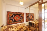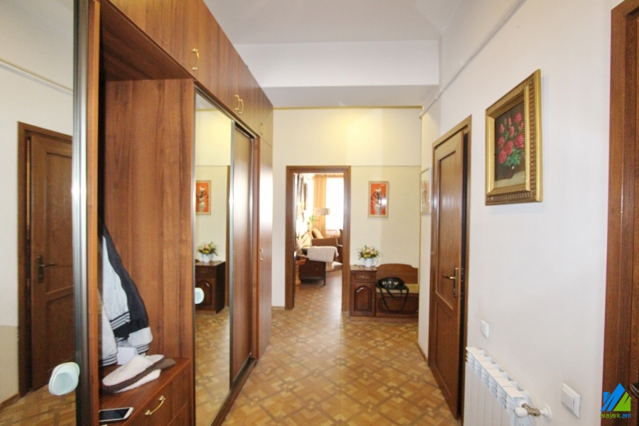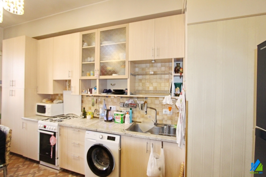 An apartment for sale in Yeghbayrutyan Street. The rooms' quantity is 2(2 remodeled into 3, 2 bedrooms and 1 hall). The apartment is newly renovated and is located on the 11th floor of the 12-storey monolith building, that is stationed on the first line. The entrance door is iron-made, the windows are euro-based, the floor is covered by solid granite, the bathroom is separate and tiled. The apartment has a parking, two balconies, built-in closet, kitchen furniture, air-conditioner, heating system and is supplied with constant water and gas. The entrance is from the yard. The view is directed towards Yeghbayrutyan Street and yard.