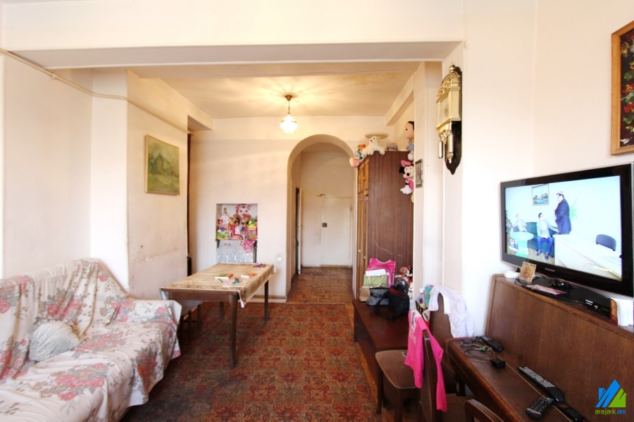 An apartment for sale in Mashtots avenue (near Pak Shuka). The rooms' quantity is 1 (1 hall). The apartment is in the state condition and is located on the top floor of the 4-storey stone building. The entrance door is iron-made, the windows are euro-based, the floor is covered by parquet, the bathroom is combined, former tiled, the electric wires are newly changed, the roof is repaired. The apartment has a heating system and is supplied with constant water and gas. The entrance is from the yard. The view is directed towards the yard.