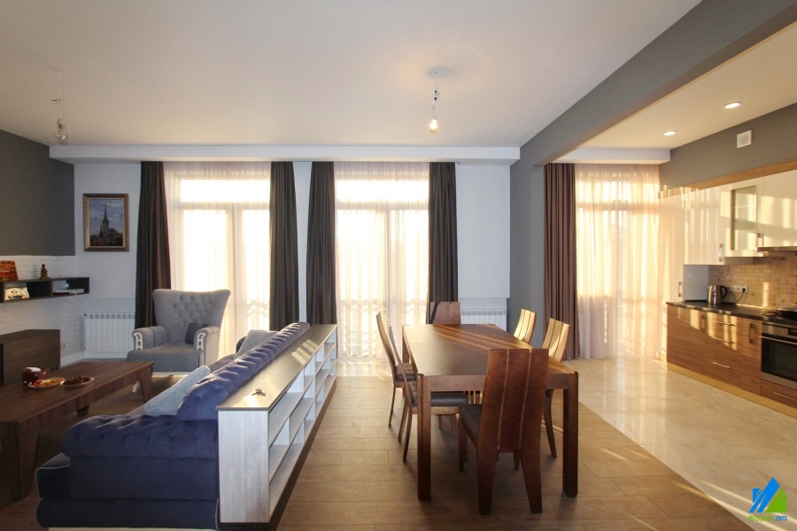 Վաճառվում է 5 սենյականոց բնակարան Լենինգրադյան փողոցում՝ 4 հարկանի նորակառույց շենքի 3-րդ հարկում (Լենինգրադյան-Շինարարներ-Արզումանյան փողոցների միջնամասում) ։ Բնակարանը նորաոճ վերանորոգված է։ Մուտքի դուռը՝ երկաթյա, պատուհանները՝ եվրո, հատակը՝ պրեսգրանիտ, սալիկ, սանհանգույցը (3) ՝ համակցված, նորաոճ սալիկապատ։ Ունի 3 կախովի և 4 ֆրանսիական պատշգամբ, ջեռուցման համակարգ, լվացքատուն, մշտական ջուր և գազ։Բնակարանը վաճառվում է ամբողջ գույքի և տեխնիկայի հետ միասին։Մուտքը՝ բակից։ Տեսարանը՝ դեպի բակ։