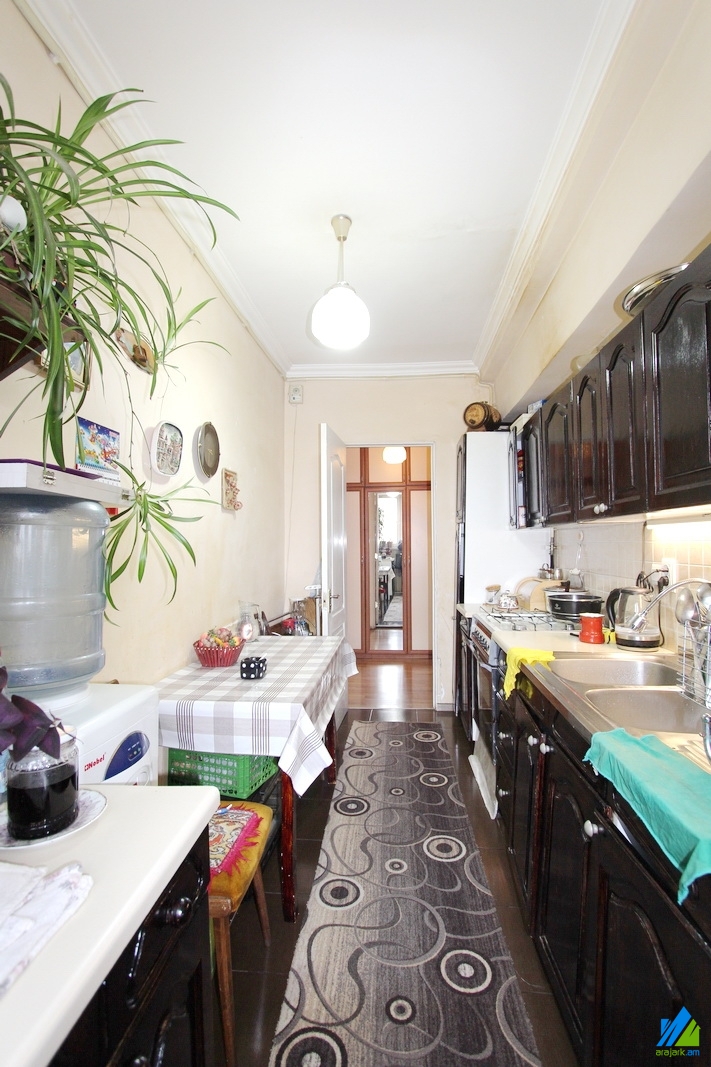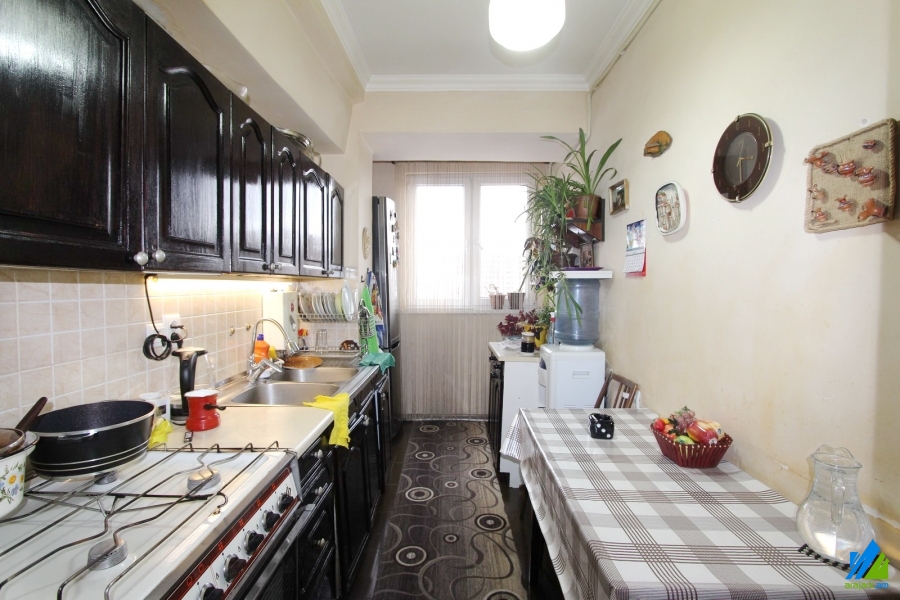 Վաճառվում է 3 սենյականոց բնակարան Տիգրան Մեծ պողոտայում (Տիգրան Մեծ-Նար-Դոս խաչմերուկ) ՝ 9 հարկանի պանելային շենքի 9-րդ հարկում։ Բնակարանը կապիտալ վերանորոգված է, առաջին գիծ։ Մուտքի դուռը՝ երկաթյա, պատուհանները՝ եվրո, հատակը՝ լամինատ, սալիկ։ Սանհանգույցը՝ առանձին, սալիկապատ, էլ․ լարերը և խողովակները՝ փոխված, տանիքը՝ վերանորոգված։ Ունի խոհանոցի կահույք, ջեռուցման համակարգ, մշտական ջուր և գազ։ Մուտքը՝ բակից։ Տեսարանը՝ դեպի բակ։