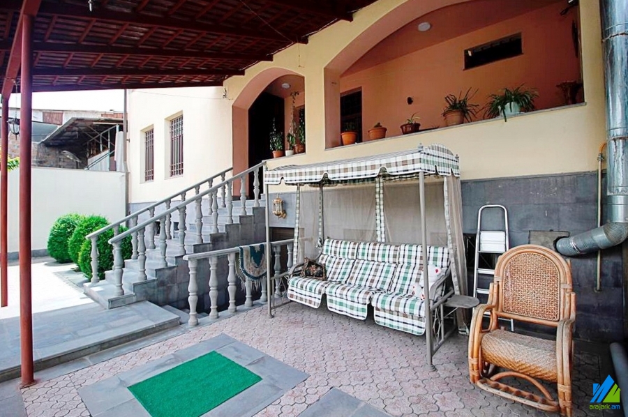 Վաճառվում է 2 հարկանի առանձնատուն Նոր-Արեշ 44 փողոցում։ Առանձնատունը նորաոճ վերանորոգված է, առաջին գիծ։ Մուտքի դուռը՝ երկաթյա, պատուհանները՝ եվրո, հատակը՝ մանրահատակ, պրեսգրանիտ, լամինատ, սանհանգույցը(2)՝ համակցված, նորաոճ սալիկապատ։ Ունի բաց լոջա, խոհանոցի կահույք, օդորակիչ, հանդերձասենյակ, նկուղ, քարե ավտոտնակ, բակ՝ դեկորատիվ և պտղատու ծառերով, ջրավազան, ծաղկանոց, բուխարի, ամառային խոհանոց, քարե պարիսպ, անվտանգության և ջեռուցման համակարգեր, մշտական ջուր և գազ։ Վաճառվում է կահույքի և տեխնիկայի մեծ մասի հետ միասին։