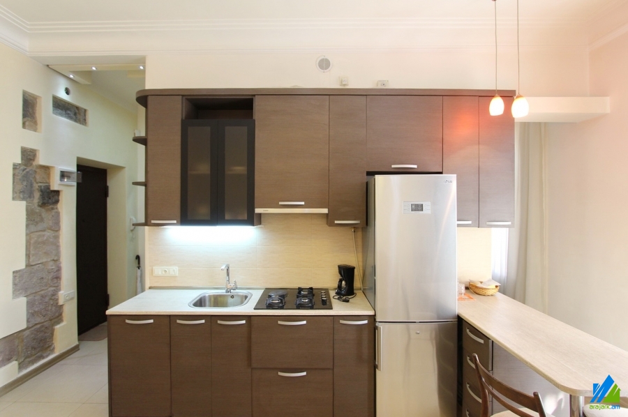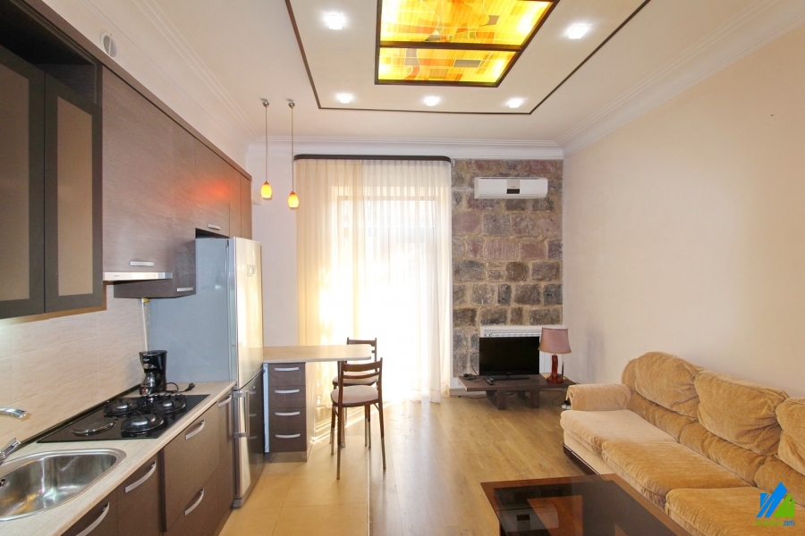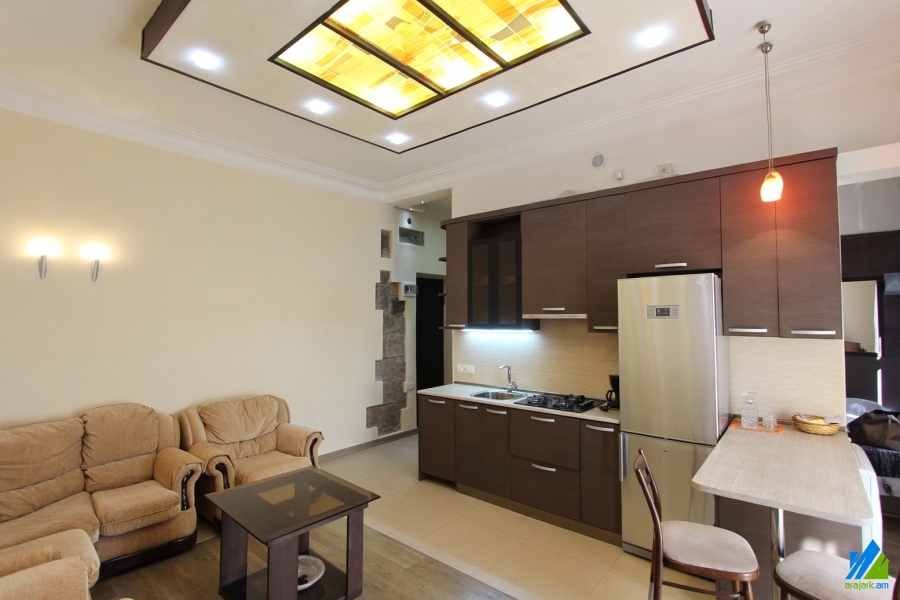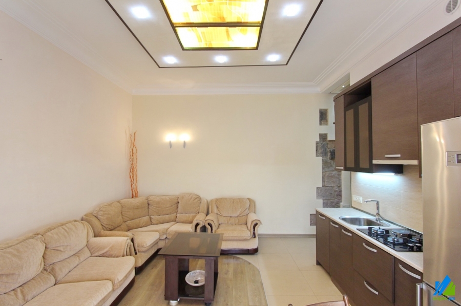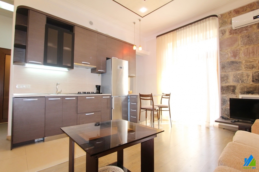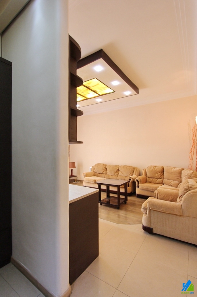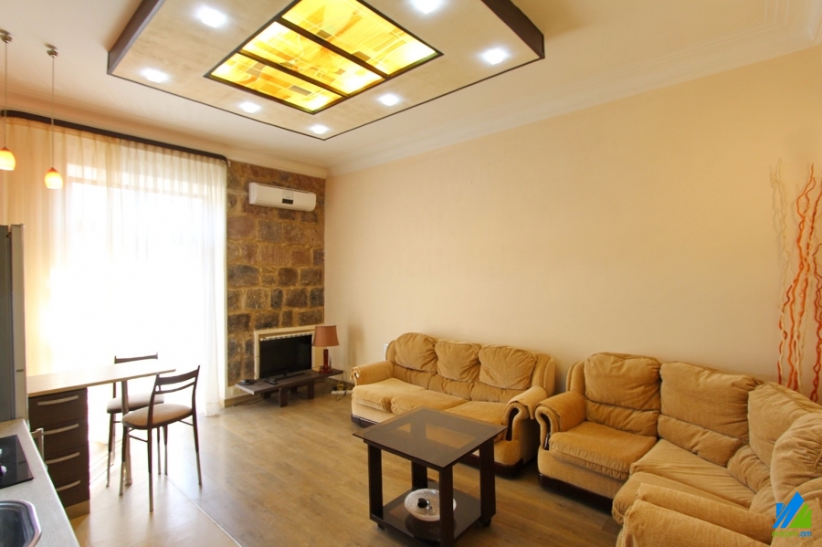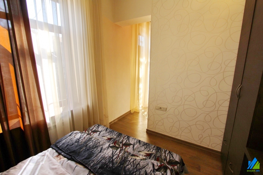 Վարձով է տրվում 2 սենյականոց բնակարան Սարյան փողոցում (Հովհ․ Թումանյանի տուն-թանգարանի հարևանությամբ)՝ 4 հարկանի քարե շենքի 3-րդ հարկում։ Բնակարանը կապիտալ վերանորոգված է, առաջին գիծ։ Մուտքի դուռը՝ երկաթյա, պատուհանները՝ եվրո, հատակը՝ լամինատ, սալիկապատ։ Սանհանգույցը՝ համակցված, նորաոճ սալիկապատ, էլ․ լարերը և խողովակները՝ փոխված։ Ունի կախովի պատշգամբ, ներկառուցված պահարան, խոհանոցի կահույք, օդորակիչ, անհատական ջեռուցման համակարգ, մշտական ջուր և գազ։ Մուտքը՝ փողոցից։ Տեսարանը՝ դեպի Սարյան փողոց։ Վարձով է տրվում կահույքի և տեխնիկայի հետ միասին։