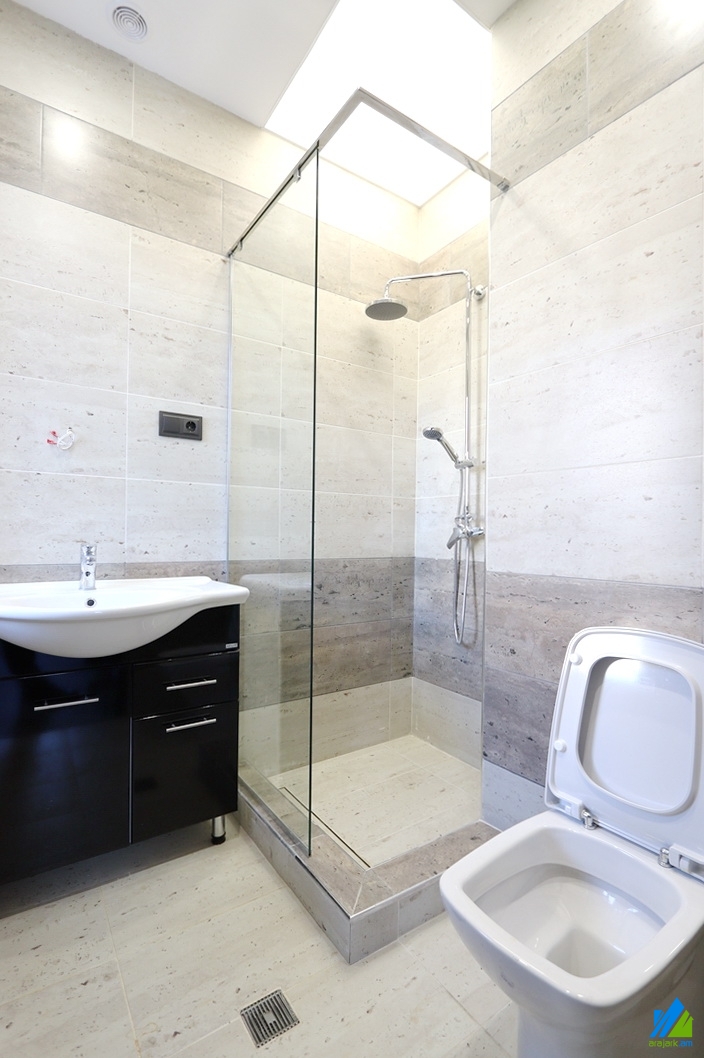 3-storey house for sale for rent (4500$) in Vahagni Block. The rooms' quantity is 8 (1 hall and 5 bedrooms) The house is modern renovated, first line. The entrance door is iron-made, the windows are euro-based, the floor is covered by solid granite and laminate, the bathrooms (5) are combined and separate, modern tiled. The house has 3 balconies, laundry, sauna, attic, garden with decorative trees, flowerbeds, cooling and freezing, heating systems and is supplied with constant water and gas. There is a remote system in every room, which regulates temperature. The view is towards the yard and street.