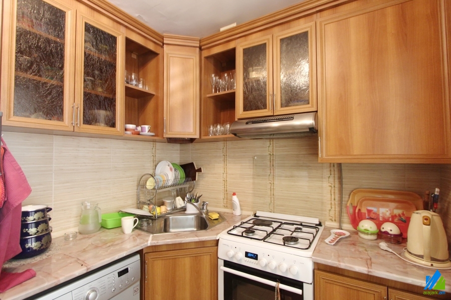 An apartment for sale/ for rent in Khachatryan street (Khachatryan-Hakobyan crossroad). The rooms' quantity is 2 (1 hall and 1 bedroom). the apartment is newly renovated and is located on the 2nd floor of the 5-storey stone building, that is stationed on the 1st line. The entrance door is iron-made, the windows are euro-based, the floor is covered by laminate, tiled, the bathroom is separate, tiled, the electric wires and pipes are newly changed. The apartment has kitchen furniture, built-in closets and is supplied with constant water and gas. The entrance is from the yard. The view is directed towards the yard, Khachatryan street.