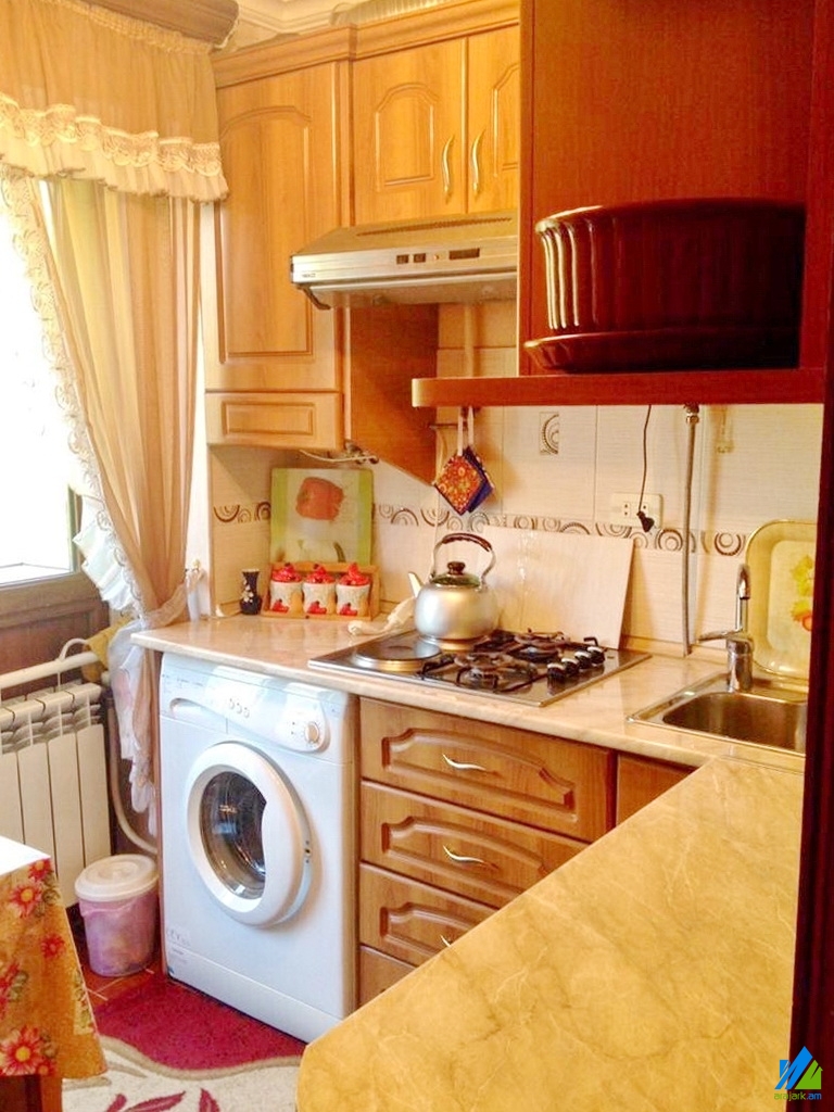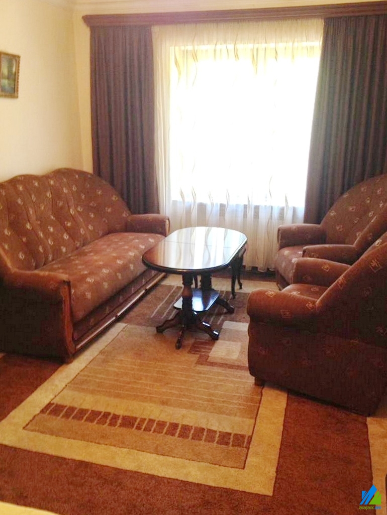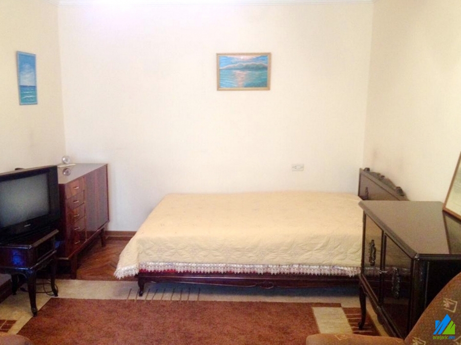 An apartment for rent in Komitas Avenue. The rooms' quantity is 1 (1 hall). The apartment is newly renovated and is located on the 3-rd floor of the 5-storey stone building, that is stationed on the first line. The entrance door is iron-made, the windows are euro-based, the floor is covered by parquet and is tiled. The bathroom is combined, tiled, the electric wires and pipes are newly changed. The apartment has a balcony, individual heating system and is supplied with constant water and gas. The entrance is from the yard. The view is towards Komitas Avenue.