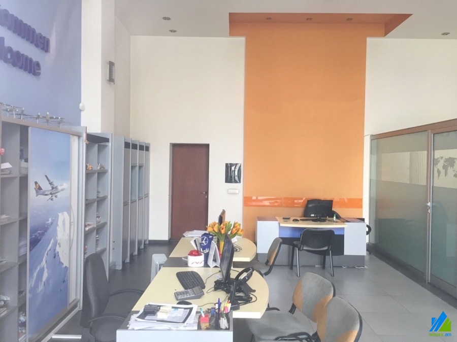 A commercial area for rent in Argishti Street (near the Municipality). The rooms' quantity is 2. The area is newly renovated and is located on the high-rise ground floor of the 5-storey monolith building, that is stationed on the first line. The entrance door is glassed, the windows are euro-based, the floor is tiled. The area has a ventilation system, guard service, air-conditioner, parking in the yard for 1-2 cars. The price includes cooling and heating, guard service and also 20% VAT.