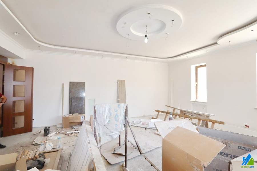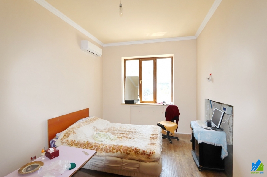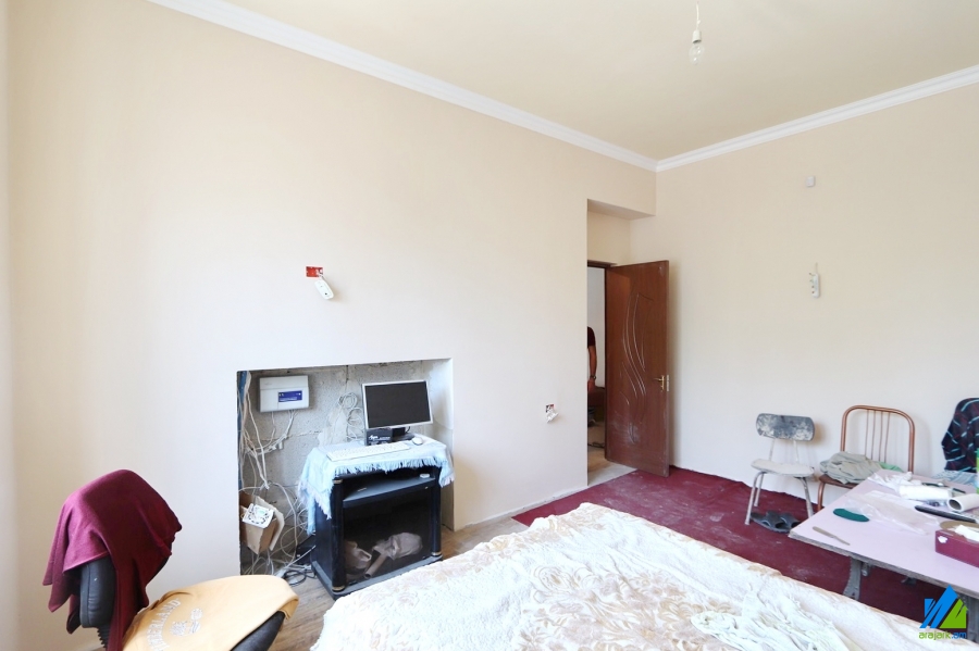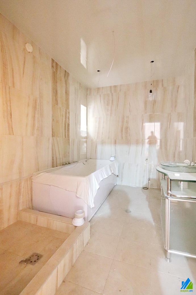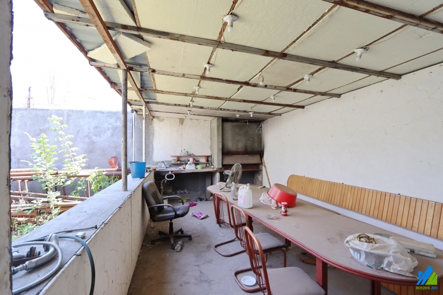 2-storey house for sale in Ghapantsyan Street (near the Yeraz District). The rooms' quantity is 8 (1 hall, 1 office, 2 playing rooms and 5 bedrooms). The house is partially newly renovated. The entrance door is iron-made, the windows are euro-based, the floor is covered by solid granite, the bathroom is combined (3) and separate (1), modern tiled. The house has 2 balconies, laundry, attic (150sq/m), decorative and fruitful trees, swimming pool, heating system, stone fence and is supplied with constant water and gas. The view is towards the yard and garden.