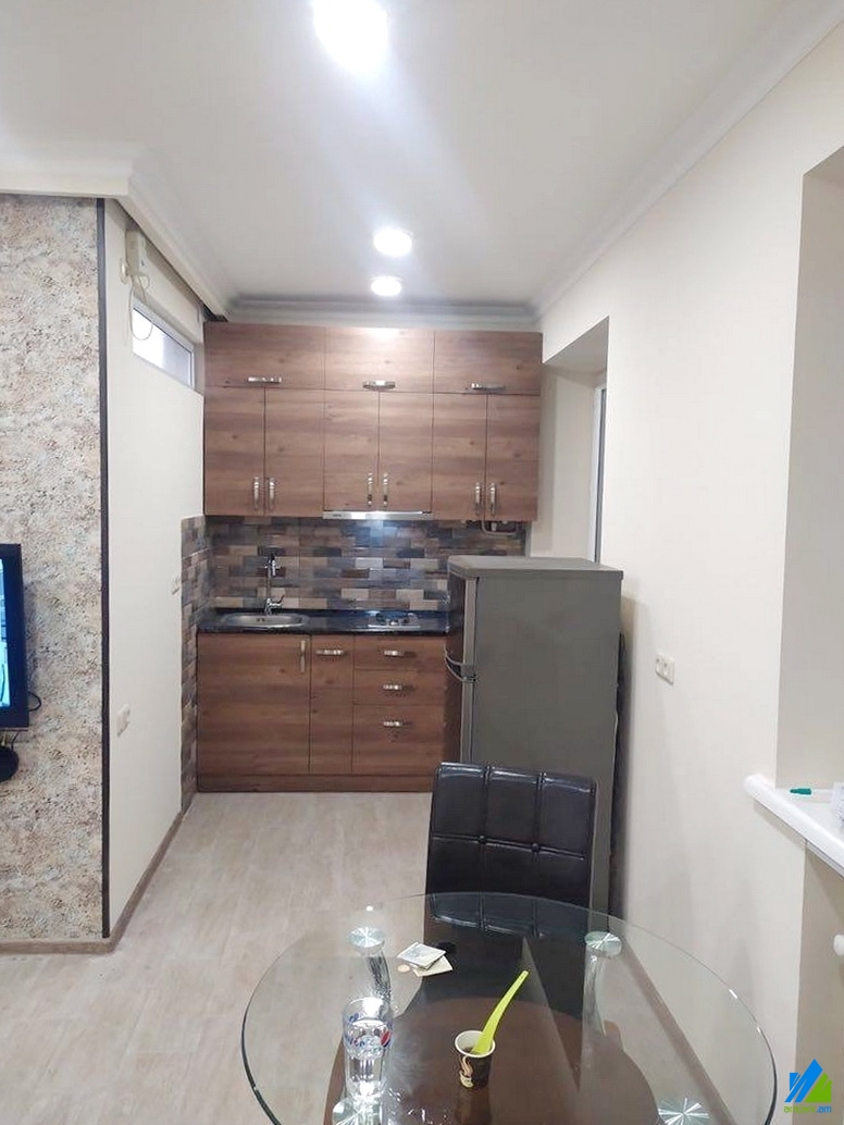 An apartment for sale in Arshakunyats avenue (near Press building) The rooms' quantity is 1 (1 studio) The apartment is newly renovated and is located on the 2nd floor of the 5-storey stone building, that is stationed on the 1st line, not inhabited. The entrance door is iron-made, the windows are euro-based, the floor is covered by laminate, the bathroom is combined, tiled, the electric wires and pipes are newly changed. The apartment has an air conditioner, heating system and is supplied with constant water and gas. The entrance is from the yard. The view is directed towards Arshakunyats avenue.