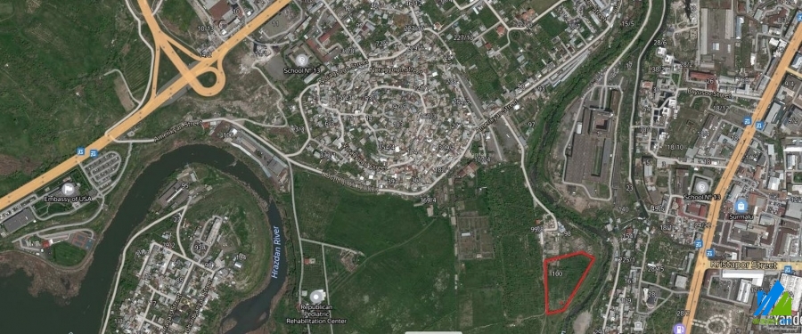 A land of residential use for sale in ِNoragyugh (near the Hrazdan river). The land has drinking and irrigation water, gas, electricity, stone fence. The front length is 170m. North-South Road will pass by the land.