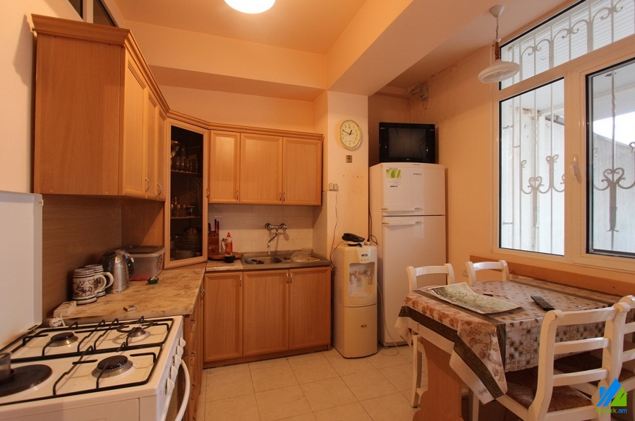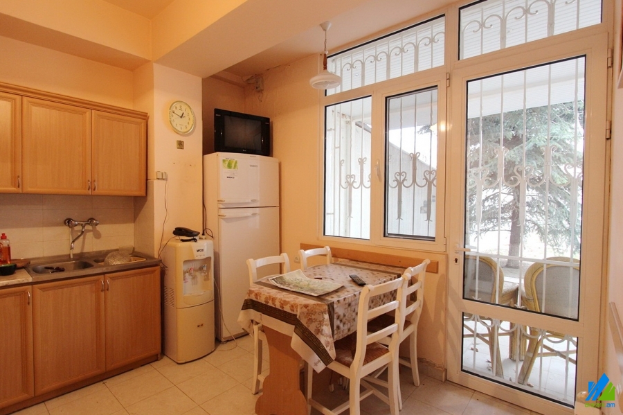 3-storey house for sale in Barbyus Street(Blur). The house is partly renovated, the first line. The entrance door is iron-made, the windows are euro-based. The bathroom (4) is separate and combined, tiled, the electric wires and pipes are newly changed, the roof is repaired. The house has plot(200 sq.m), garage, balcony, kitchen furniture, built-in closets, heating system and is supplied with constant water and gas. The view is towards the yard and Barbyus Street.