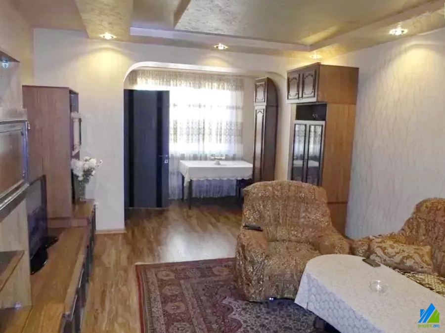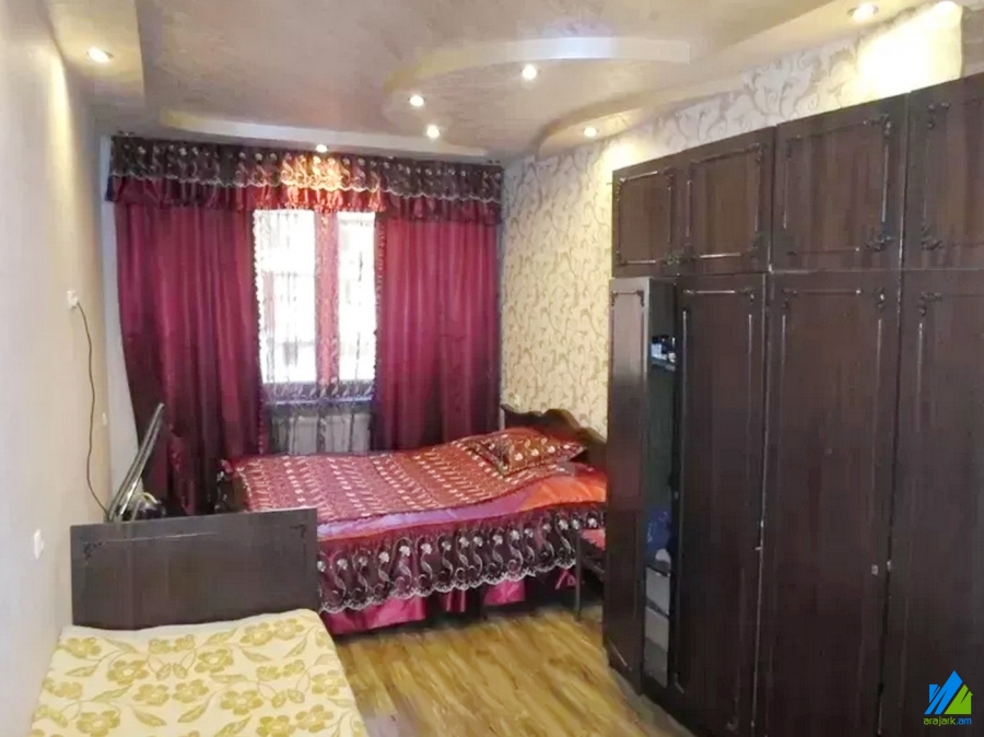 An apartment for sale in Arshakunyats Avenue(near Grand Sport). The rooms' quantity is 3 (1 hall and 2 bedrooms). The apartment is newly renovated and is located on the 4th floor of the 5-storey stone building. The entrance door is iron-made, the windows are euro-based, the floor is covered by laminate. The bathroom is separate, modern tiled, the electric wires and pipes are newly changed. The apartment has a storage-room (in the apartment), heating system and is supplied with constant water. The entrance is from the yard. The view is towards the yard.