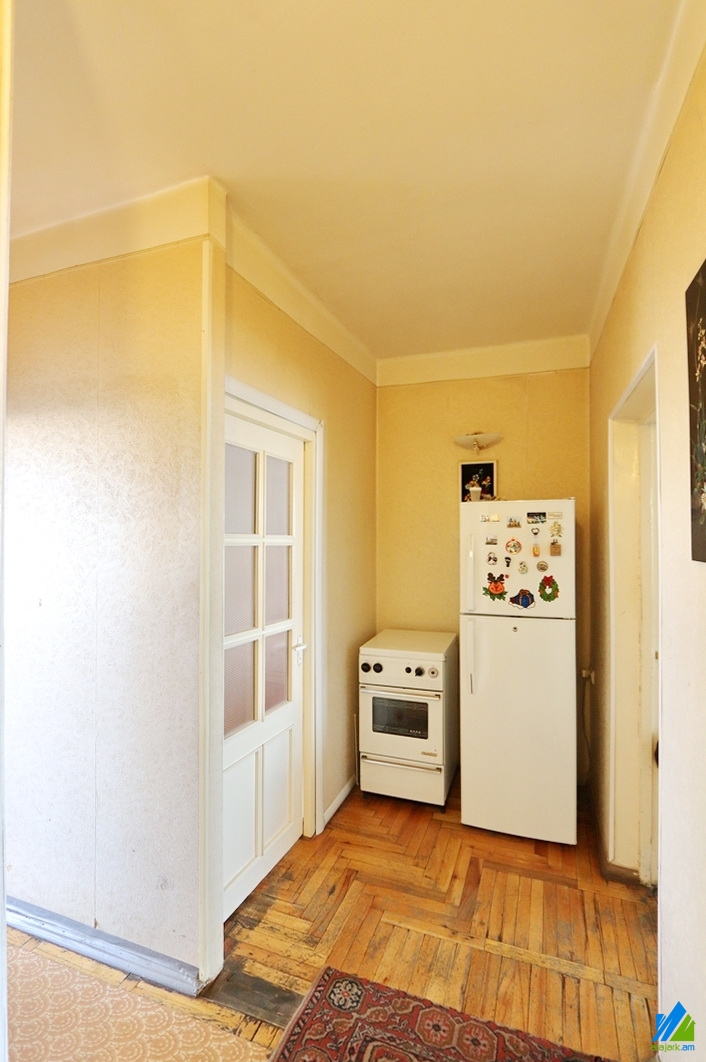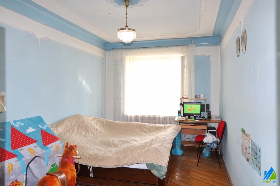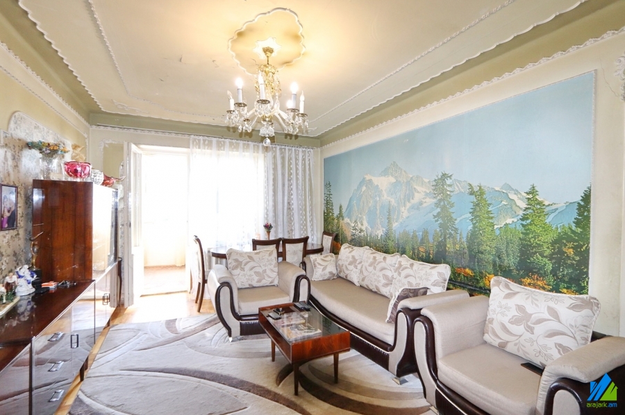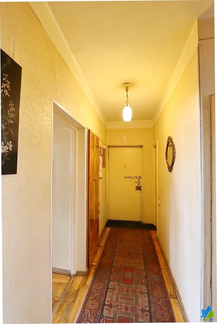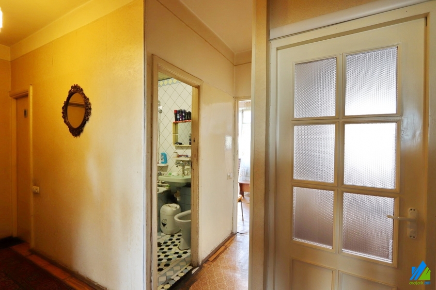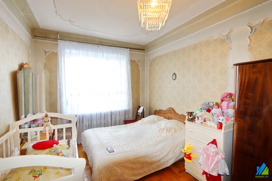 An apartment for sale in Kievyan 1-st Alley (Kievyan-Orbeli Crossroad). The rooms' quantity is 4 (1 hall and 3 bedrooms). The apartment is in the state condition and is located on the 3-rd floor of the 5-storey stone building, that is stationed on the 1st line. The entrance door is iron-made, the windows are wooden, the floor is covered by parquet. The bathroom is combined, formr tiled, the electric wires and pipes are newly changed. The apartment has built-in closets, kitchen furniture, 2 balconies and is supplied with constant water and gas. The entrance is from the yard. The view is towards the yard and Kievyan 1st Alley.