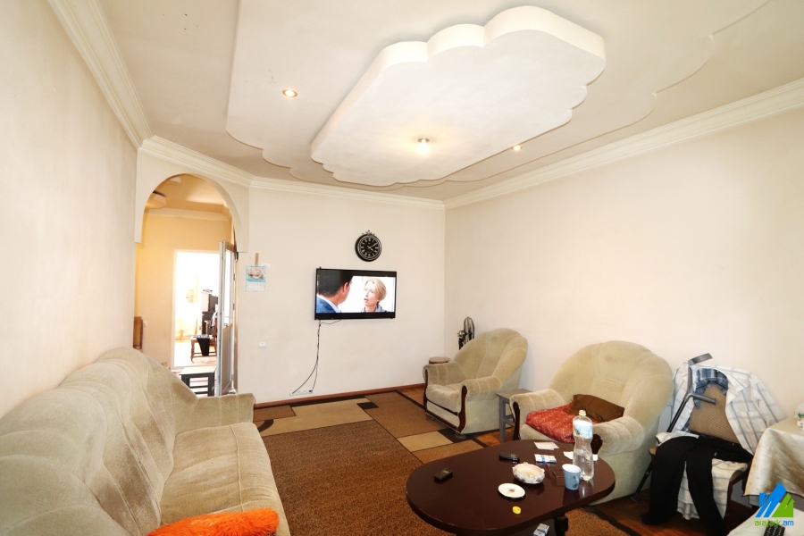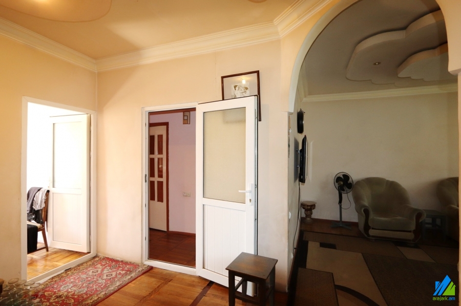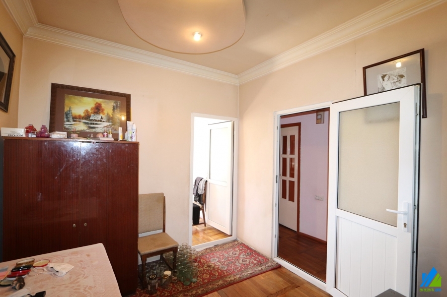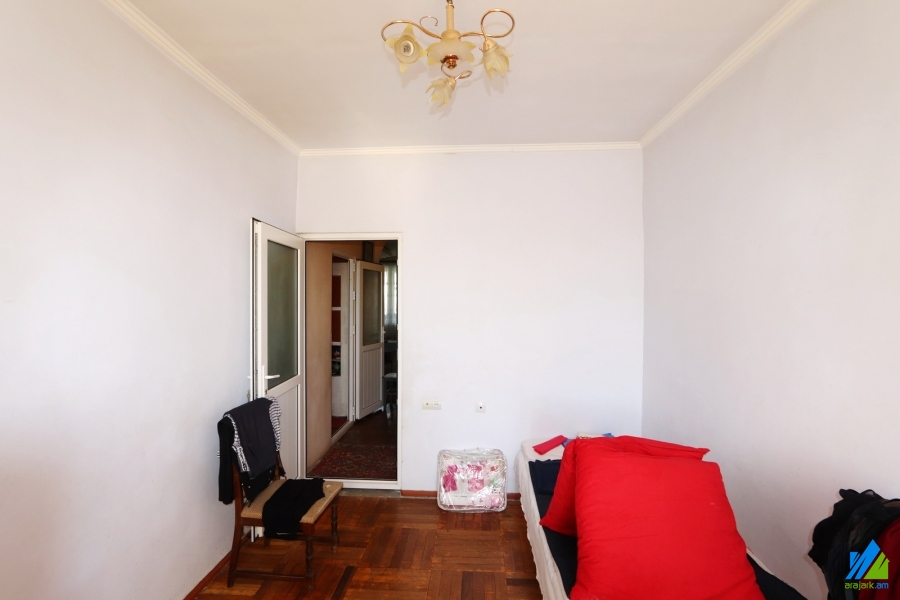 An apartment for sale in Nubarashen highway. The rooms' quantity is 3 (1 hall and 2 bedrooms). The apartment in middle renovated and is located on the top floor of the 5-storey stone building. The entrance door is iron-made, the windows are euro-based, wooden, the floor is covered by parquet, the bathroom is separate, the electric wires and pipes are newly changed. The apartment has 2 balconies, storage room (in the apartment) and is supplied with constant water and gas. The entrance is from the yard. The view is directed towards the yard.