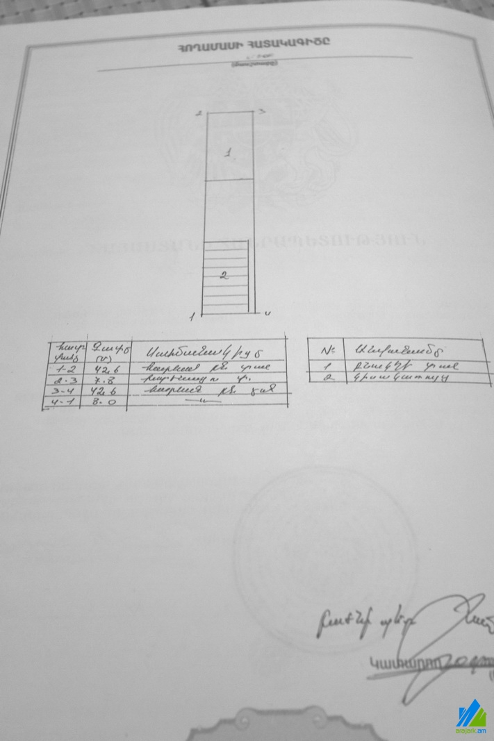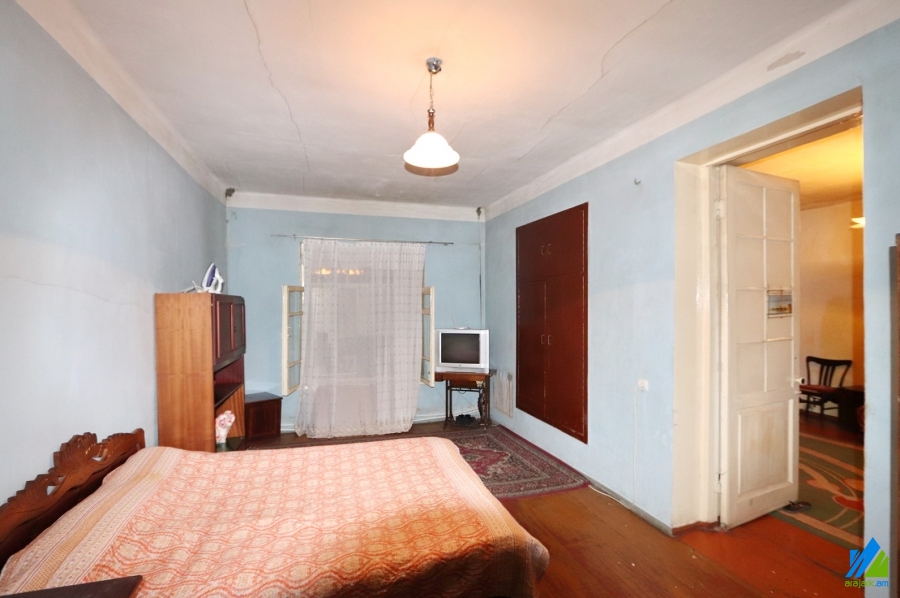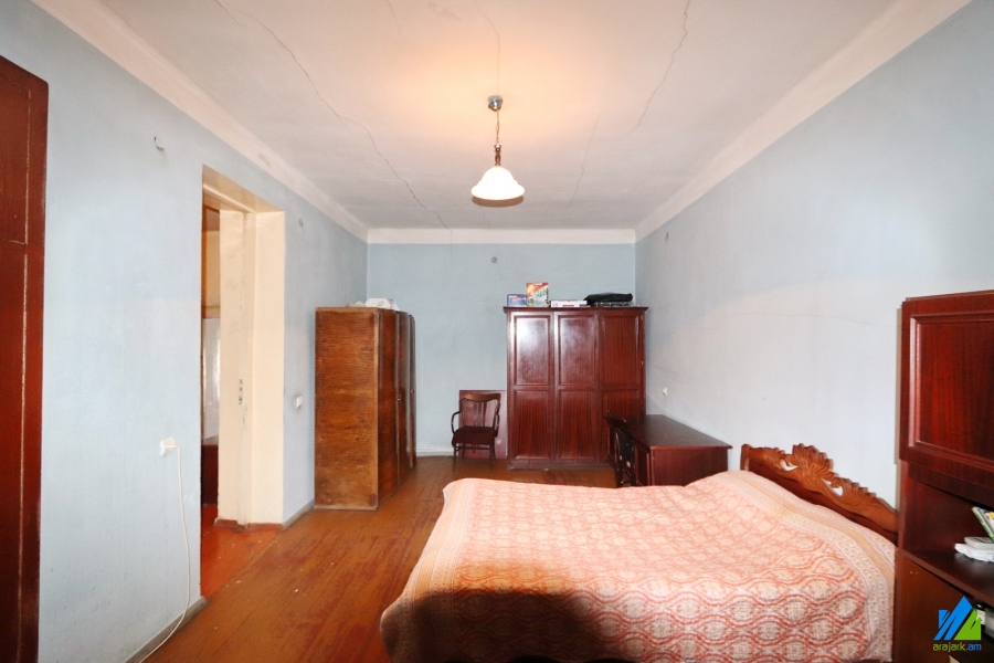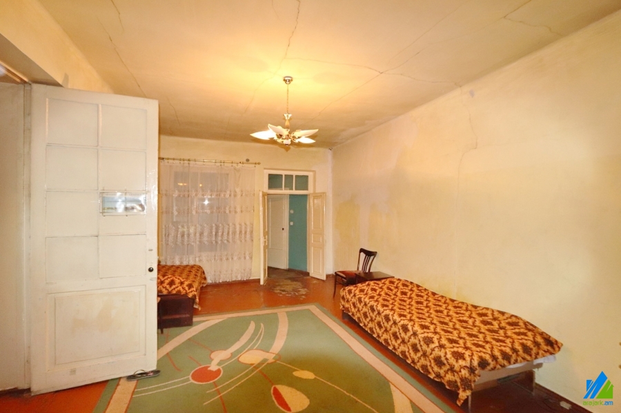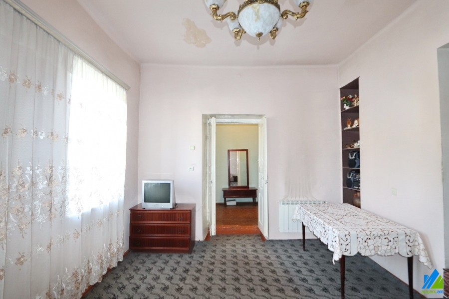 1-storey house for sale in Khorenatsi Street (near the Metaks Gold). The rooms' quantity is 3 (1 hall and 2 bedrooms). The house is in the state condition and is stationed on the first line. The entrance door is wooden, the windows are euro-based and wooden,the bathroom is combined. The house has a cellar, auxiliary building (non-authorisied unfinished building), 2 adjacent walls, heating system and is supplied with constant water and gas. The view is towards the yard and Khorenatsi Street.