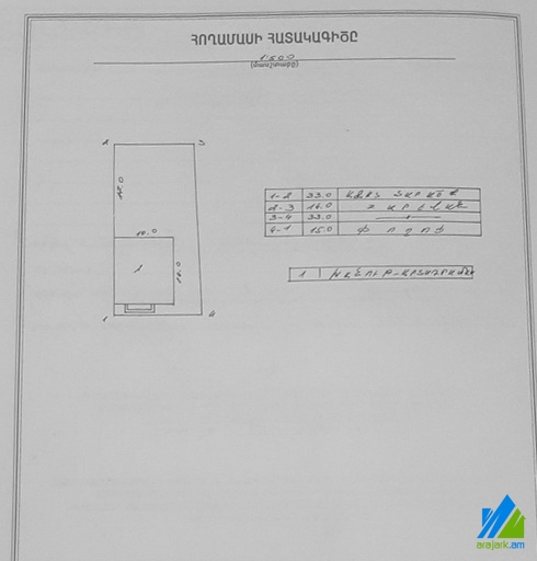 A commercial area for sale in Nubarashen 11th Street. The area is newly renovated and is stationed on the first line. The entrance door is iron-made, the windows are euro-based, the floor is tiled. The area has a yard with 80 fruitful trees, stained glasses, possibility of gas and is supplied with constant water. The entrance is from the street and yard. The view is towards the yard and Nubarashen 11th Street. The building area is 120 sq/m. The partial sale is also possible․ The living area is 120 sq.m., the total lend of area is 450 sq.m.