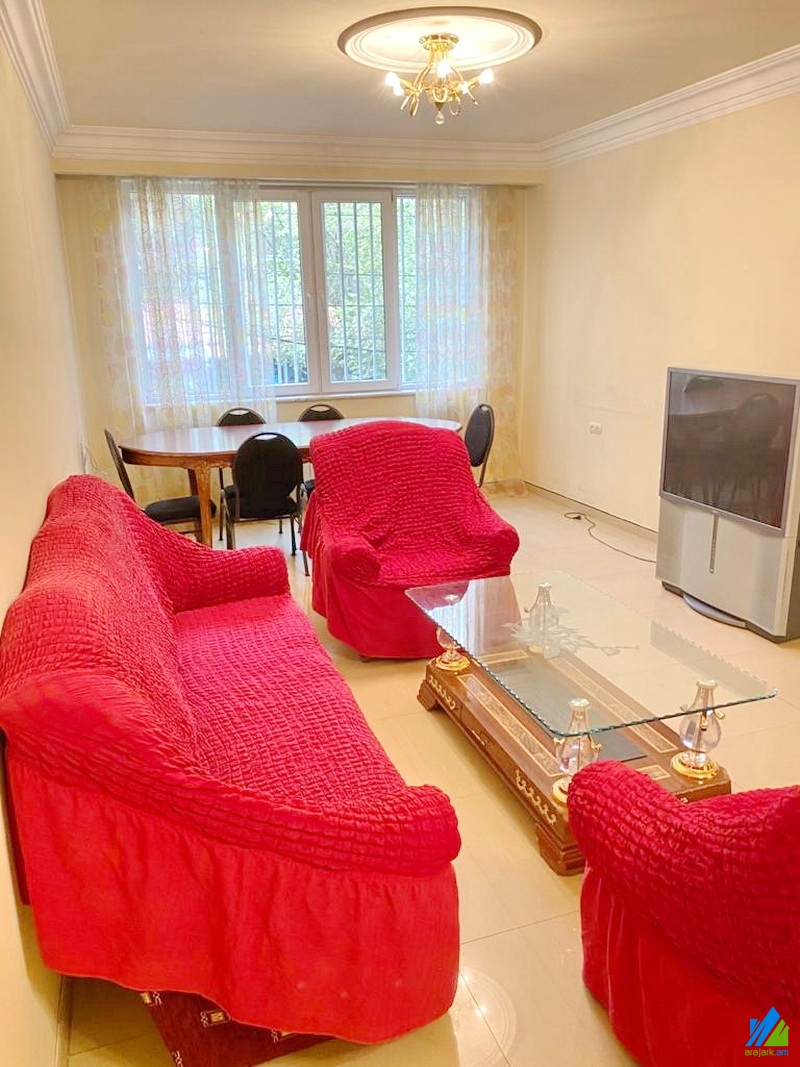 An apartment for rent in Papazyan Street (near the "Yeritsyanner" supermarket). The rooms' quantity is 3 (3 remodeled into 4, which includes 1 hall and 3 bedrooms). The apartment is newly renovated and is located on the 2nd floor of the 7-storey panel building, that is stationed on the first line. The entrance door is iron-made, the windows are euro-based, the floor is covered by parquet and solid granite. The bathroom is combined, modern tiled, the electric wires and pipes are newly changed. The apartment has individual heating system and is supplied with constant water and gas. The entrance is from the street. The view is towards the yard and Papazyan Street.