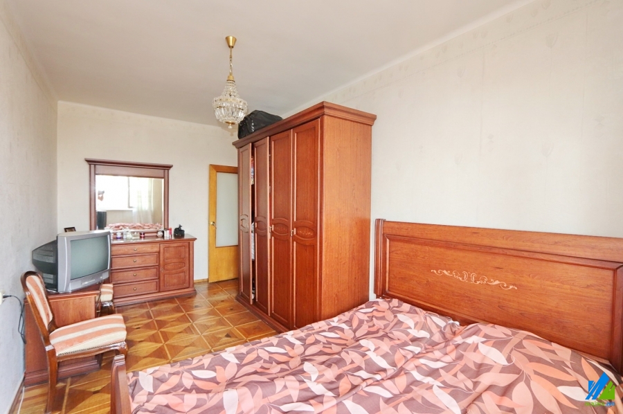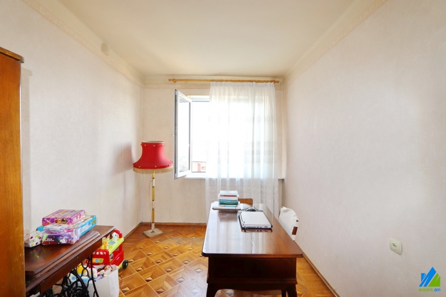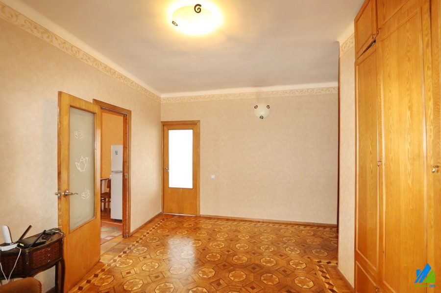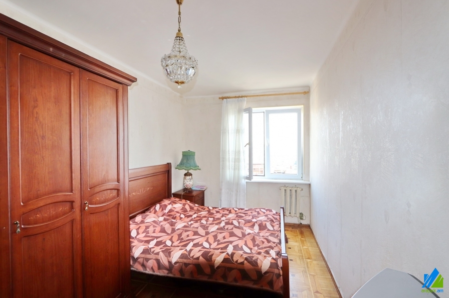 An apartment for sale in E. Kochar Street (near the Tashir trade center). The rooms' quantity is 3(4 changed into 3, which includes 1 hall and 2 bedrooms). The apartment is middle renovated and is located on the 15th floor of the 16-storey panel building. The entrance door is iron-made, the windows are euro-based and wooden, the floor is covered by parquet and is tiled. The bathroom is separate and tiled, the electric wires and pipes are newly changed. The apartment has a balcony and is supplied with constant water. The entrance is from the yard. The view is towards the Masis.