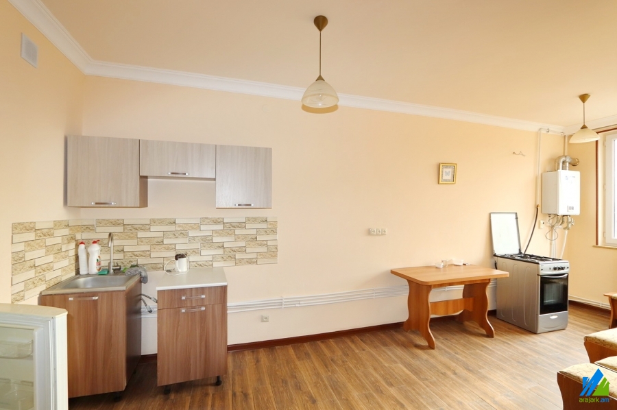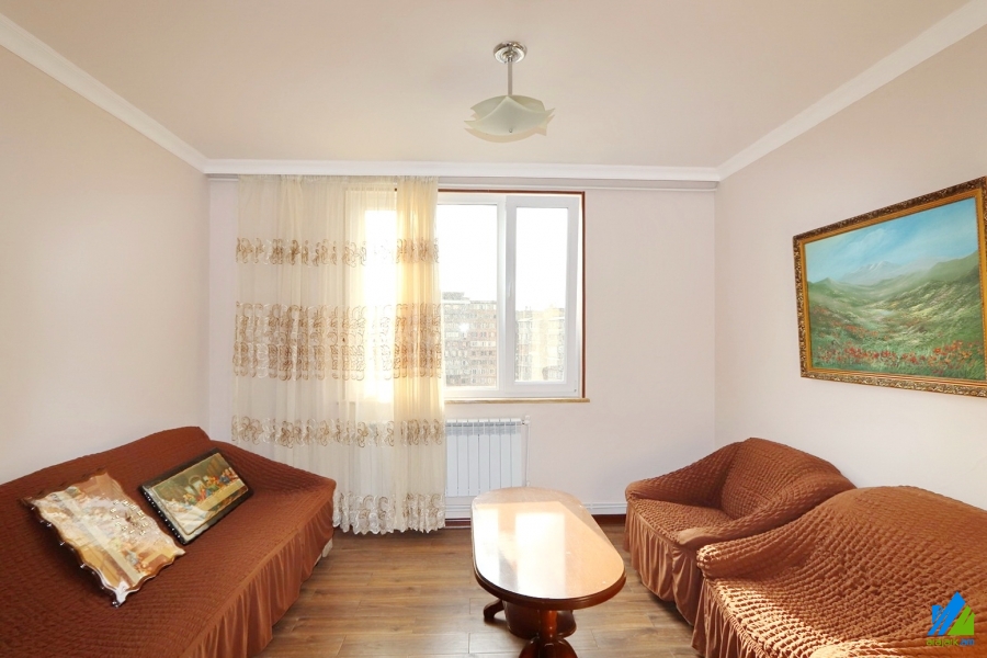 An apartment for rent in Vardanants Street (near the Gnuni Market). The rooms' quantity is 2 (2 rooms remodeled into 3, which includes 1 studio and 2 bedrooms). The apartment is newly renovated and is located on the 9th floor of the 11-storey panel building, that is stationed on the first line. The entrance door is iron-made, the windows are euro-based, the floor is covered by solid granite. The bathroom is combined, modern tiled, the electric wires and pipes are newly changed. The apartment has individual heating system and is supplied with constant water and gas. The entrance is from the yard. The view is towards the yard and Vardanants Street. There will be added some pieces of furniture, if desired.