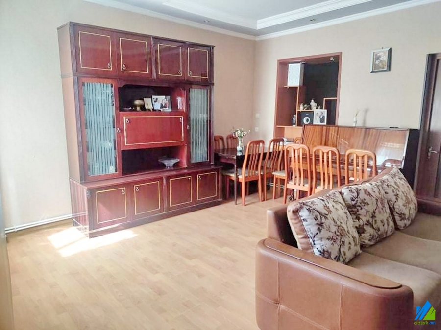 1 floor house for sale in Nor Aresh Street. The house is newly renovated and is stationed on the first line. The entrance door is iron-made, the windows are euro-based, the floor is covered by laminate, the bathroom is combined. The house has garage(49sq.m), yard, flowerbeds and is supplied with constant water and gas.