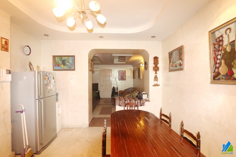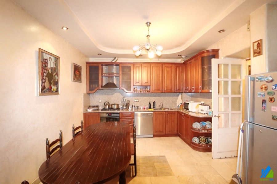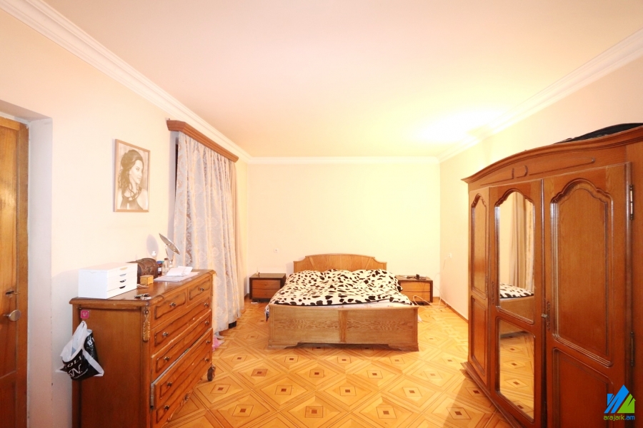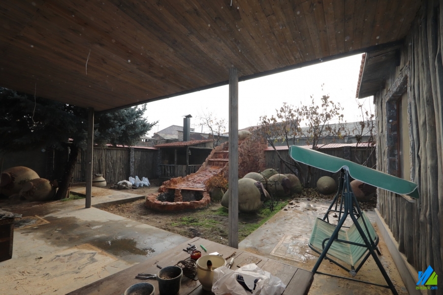 2-storey house for rent on S. Shengavit's 9th street. The rooms' quantity is 7 (a hall and 6 berdooms). The house is newly renovated and is stationed on the first line. The entrance door is iron-made, the windows are euro-based, the floor is covered by parquet, laminate and is tiled. The bathroom(2) is combined and modern tiled (1). The electric wires and pipes are newly changed. The house has a garage, stone fence, nice yard with decorative trees, summer kitchen, fireplace, heating system, kitchen furniture and is supplied with constant water and gas. The view is towards the yard and garden.