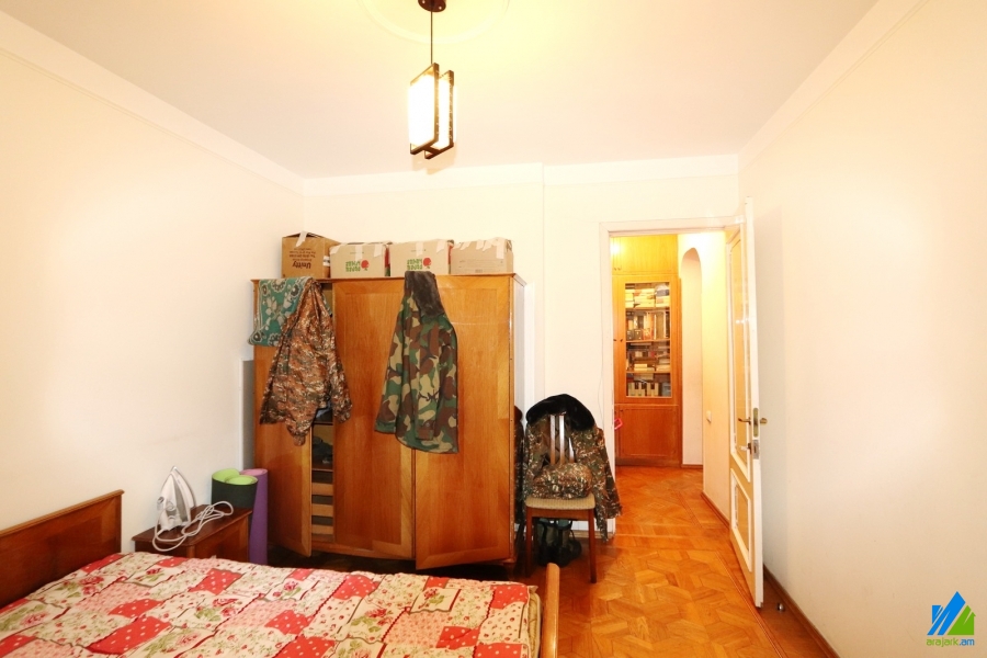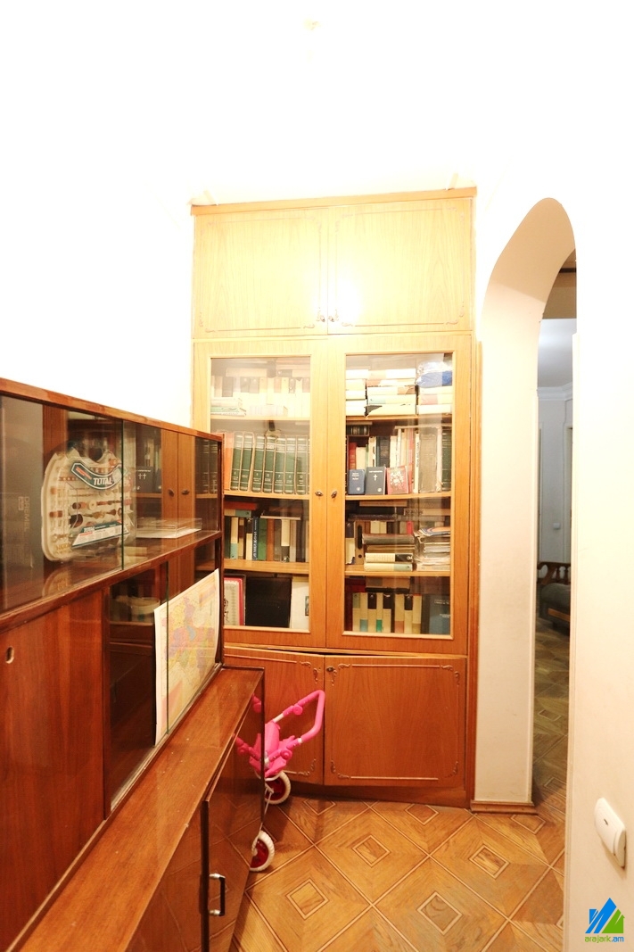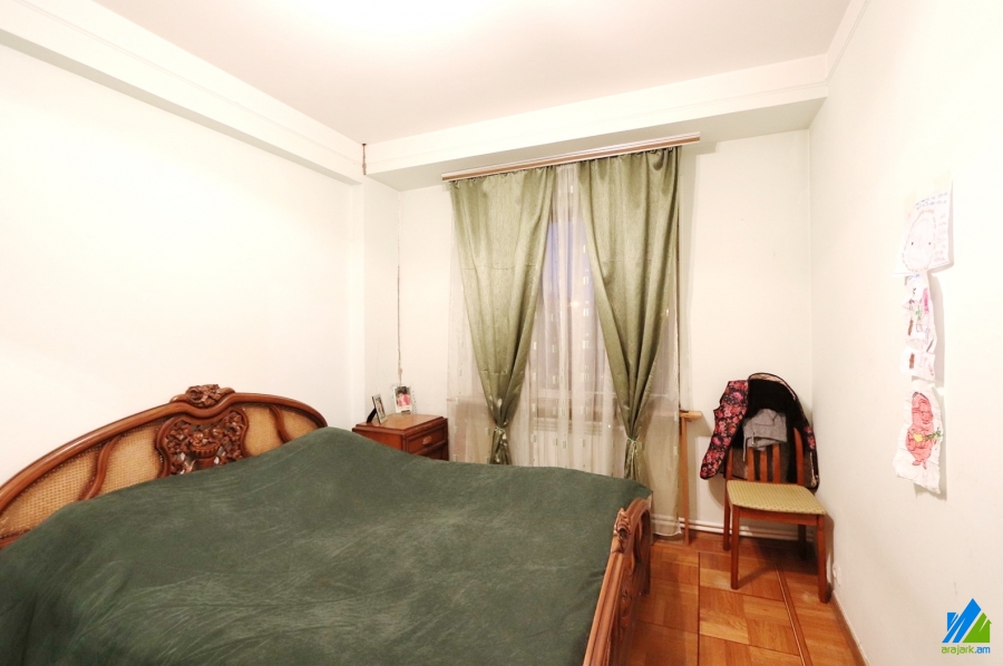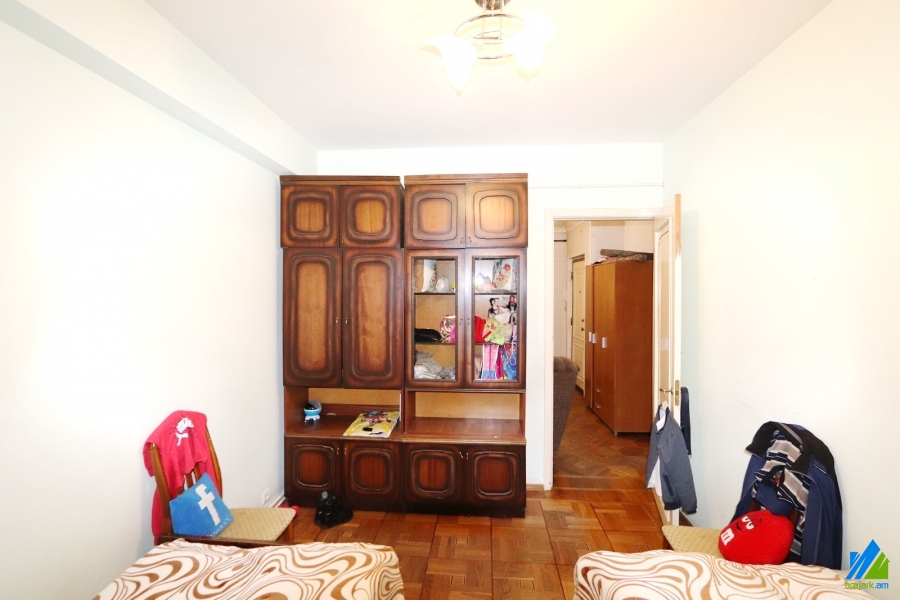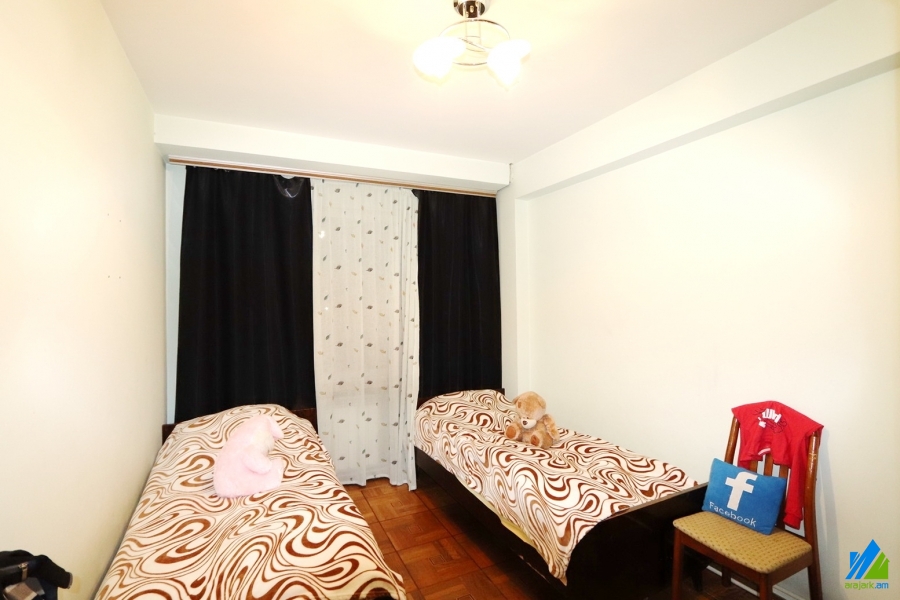 An apartment for sale on Aghbyur Serob street (near the Aghbyur Serob-Papazyan crossroad). The rooms' quantity is 4 (a hall and 3 bedrooms). The apartment is in the middle condition and is located on the 4th floor of the 16-storey panel building, which is stationed on the first line. The entarnce door is iron-made, the windows are euro-based and/or wooden, the floor is covered by parquet. The bathroom is separate and tiled. The electric wires and pipes are newly changed. The apartment has a garage, balconies, storage-room, heating system, kitchen furniture, built-in closets and is supplied with constant water and gas. The entarnce is from the yard. The view is towards the yard. The apartment can also be sold along with the stone garage for extra pay (18000$).