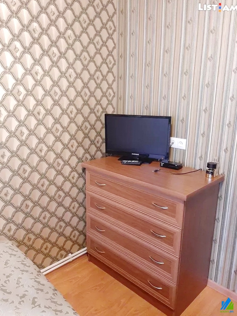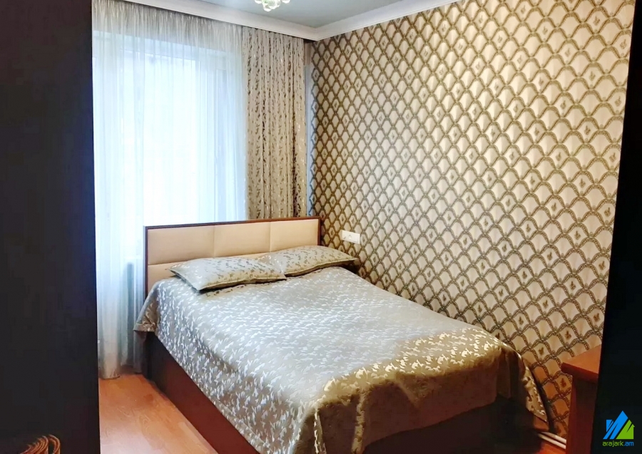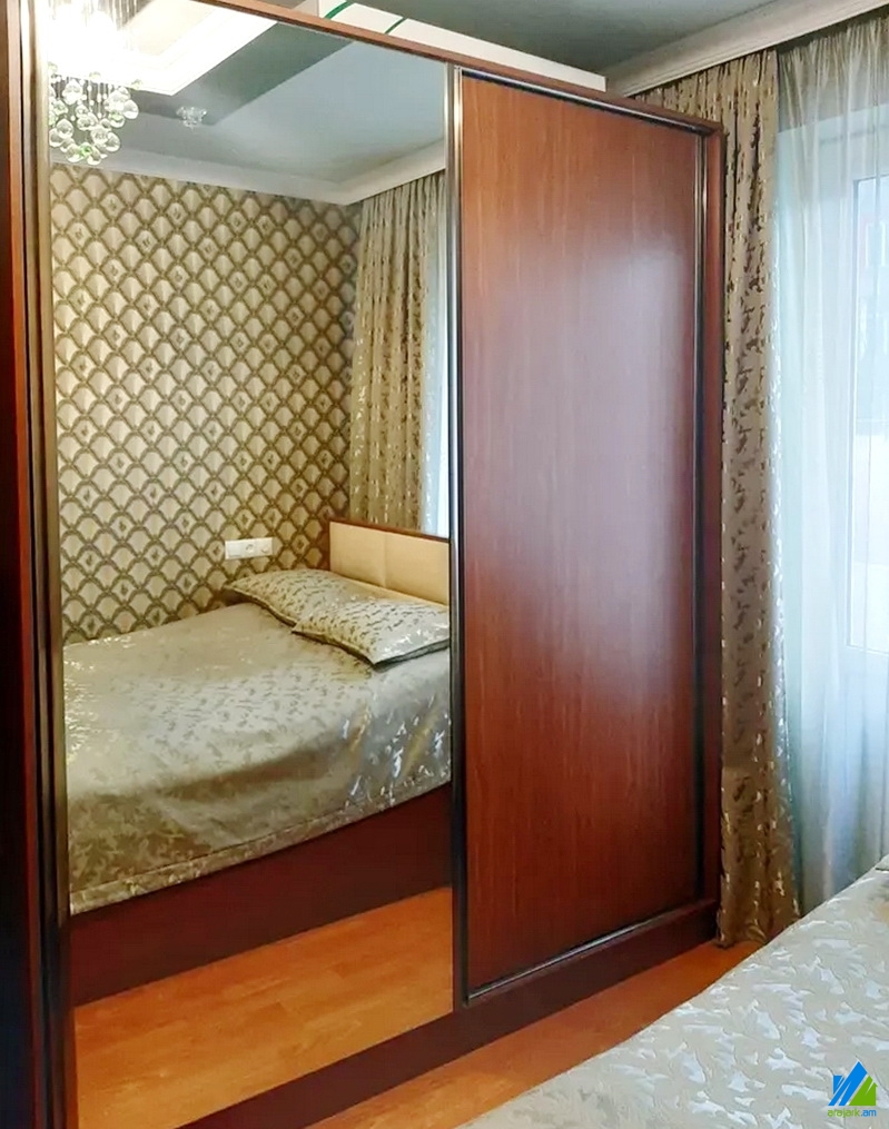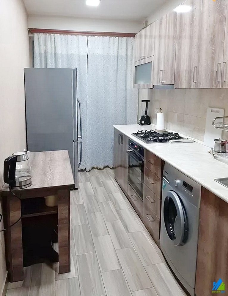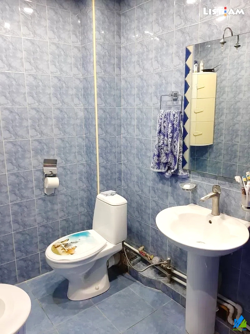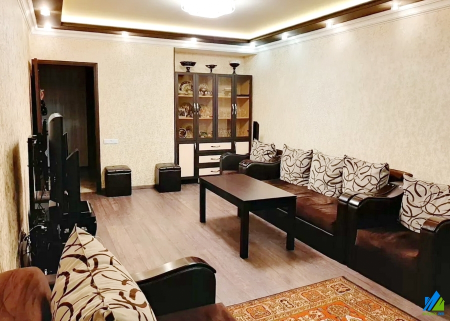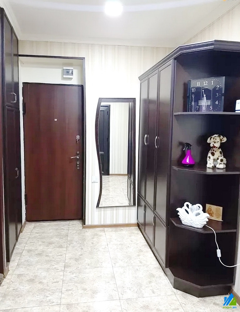An apartment for sale on Frunze street (near the Shengavit's district hall). The rooms' quantity is 3 (a hall and 2 bedrooms). The apartment is newly renovated and is located on the 2nd floor of the 5-storey stone building, which is stationed on the second line. The entrance door is iron-made, the windows are euro-based, the floor is covered by laminate. The bathroom is combined and tiled. The electric wires and pipes are newly changed. The apartment has parking in the yard, balcony, heating system and is supplied with constant water and gas. The entrance is from the yard. The view is towards the yard. The apartment is being sold along with the whole furniture and electronic devices.
