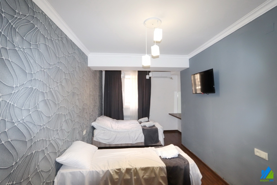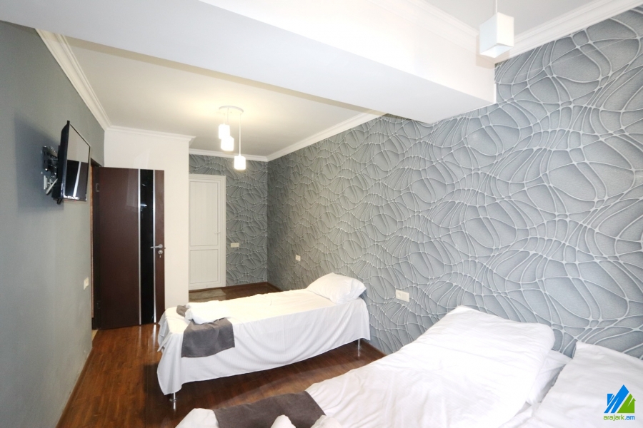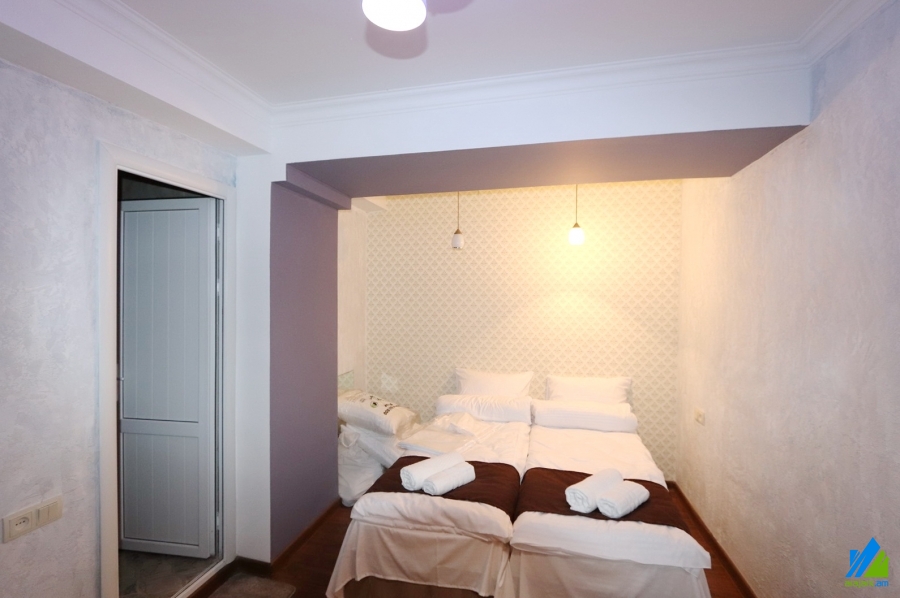 Commercial area for rent in Tigran Mets Avenue. The rooms' quantity is 5. The area is newly renovated and is located on the grounf floor ( zero entrance) of the 12-storey panel building. The entrance door is made of iron, the windows are euro-based, the floor is covered by solid granite. The bathroom is modern tiled, the electric wires and pipes are newly changed. The area has a heating system, air-conditioner and is supplied with constant water and gas. The entrance is from the yard. Daily rent refers only to the rooms. It is possible to use the area as the office.