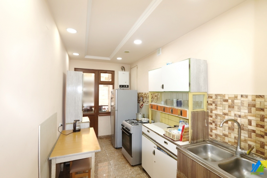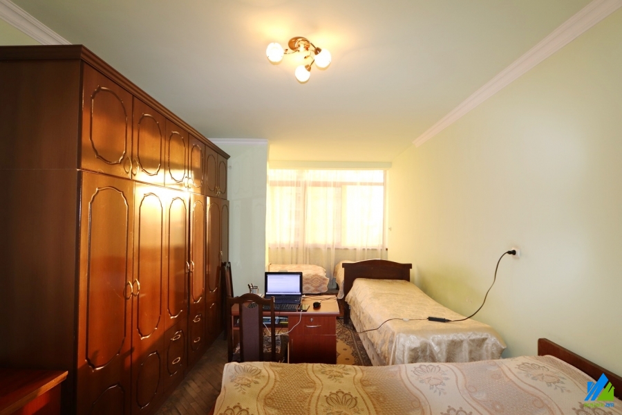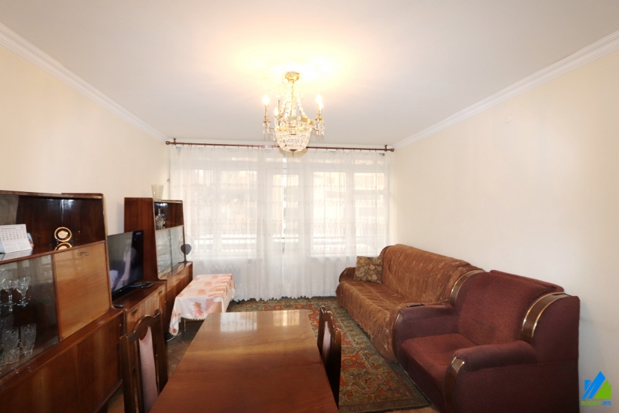 An apartment for sale in Baghramyan Avenue . The rooms' quantity is 2 (1 hall and 1 bedroom). The apartment is partially newly renovated and is located on the 5th floor of the 8-storey panel building, that is stationed on the first line. The entrance door is iron-made, the windows are euro-based, the floor is covered by parquet. The bathroom is separate, former tiled, the electric wires and pipes are newly changed. The apartment has a balcony, storage 6sq.m and is supplied with constant water and gas. The entrance is from the yard. The view is towards the yard and Baghramyan Avenue.