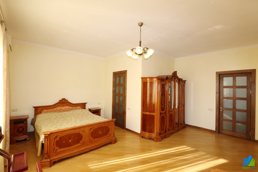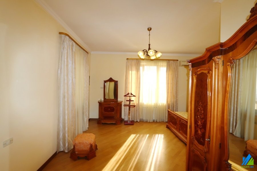 3-storey 5 room house for sale or for rent in Sose Street. The house is newly renovated. The entrance door is made of iron, the windows are euro-based, the floor is covered by parquet and solid granite. The bathrooms (3) are combined, separate and modern tiled, the electric wires and pipes are newly changed. The house has 2 balconies, cellar, terrace, nice yard, decorative trees, heating system and is supplied with constant water and gas. The rent price is 2 000 000 AMD.