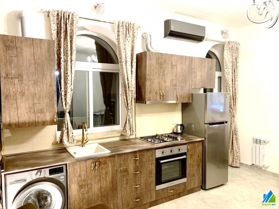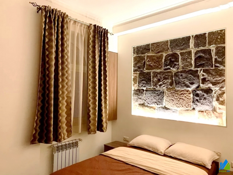 An apartment for sale in Chaykovski Street. The rooms' quantity is 2 (a studio and a bedroom). The apartment is newly renovated and is located on the 2nd floor of the 4-storey stone building that is stationed on the 1st line. The entrance door is made of iron, the windows are euro-based, the floor is covered by solid granite. The bathroom is combined and modern tiled, the electric wires and pipes are newly changed. The apartment has a balcony, heating system and is supplied with constant water and gas. The entrance is from the yard. The view is towards the street.