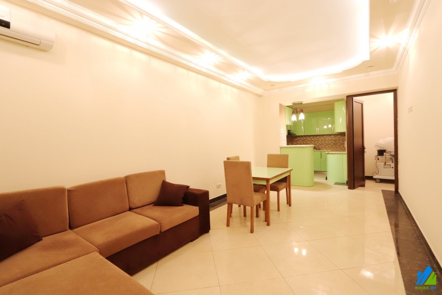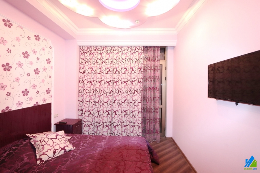 An apartment for sale in Tsitsernakaberd Highway. The rooms' quantity is 2 (1 studio and 1 bedroom). The apartment is newly renovated and is located on the 2ND floor of the 13-storey new-built building, that is stationed on the first line. The entrance door is iron-made, the windows are euro-based, the floor is covered by laminate, solid granite, the bathroom is combined and modern tiled. The apartment has a balcony, storage room, air-conditioner, heating system and is supplied with constant water. The entrance is from the yard. The view is towards Dalma. The apartment is being sold with furniture and electronical devices.