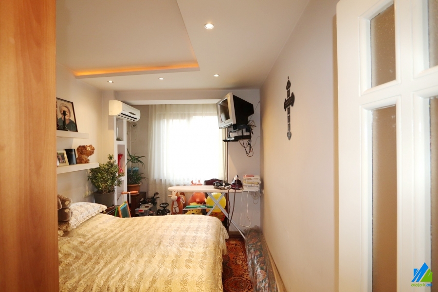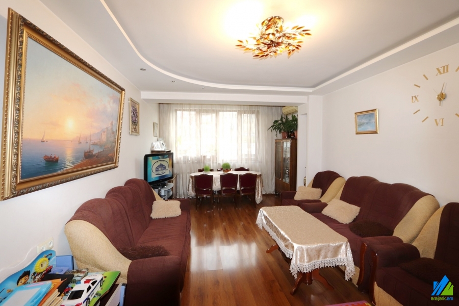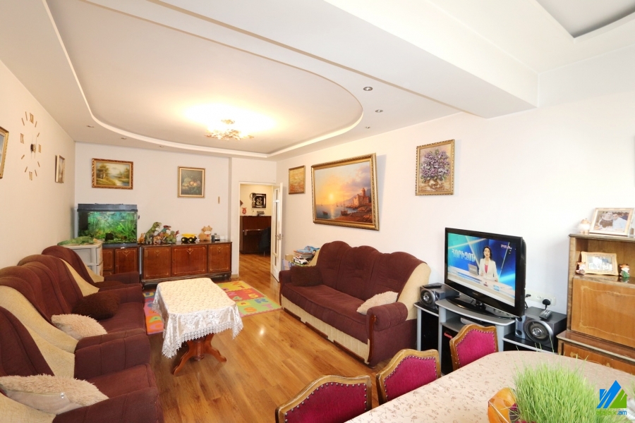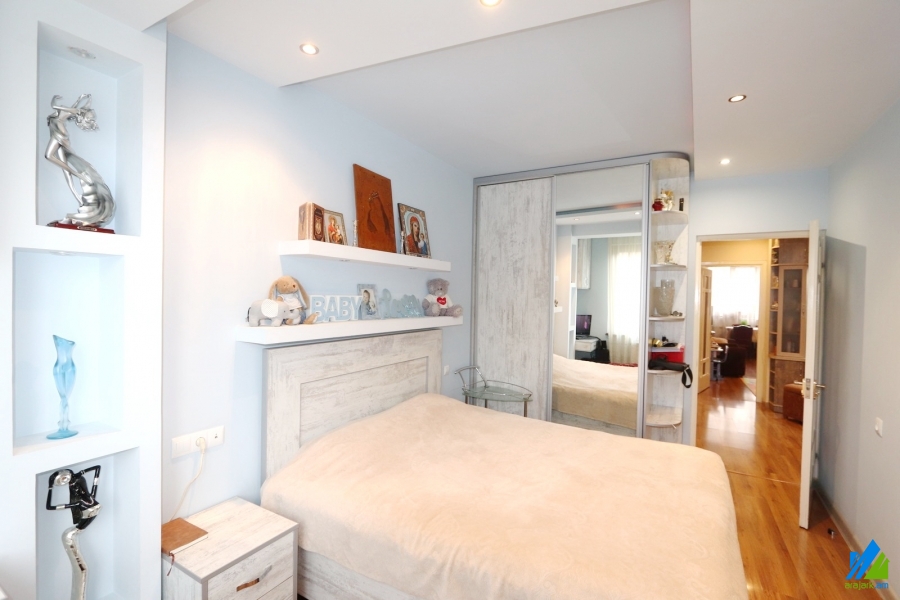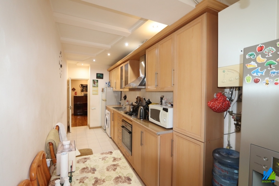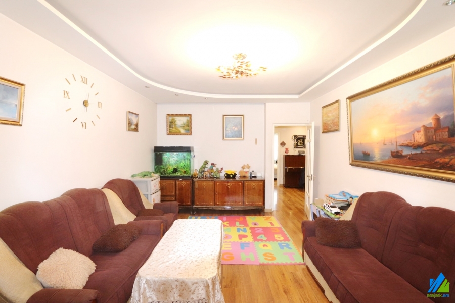 An apartment for sale in Avanesov Side Street. The rooms' quantity is 4 ( a hall and 3 bedrooms). The apartment is newly renovated and is located on the 2nd floor of the 5-storey stone building. The entrance door is made of iron, the floor is covered by laminate, the windows are euro-based. The bathroom is combined and tiled, the electric wires and pipes are newly changed. The apartment has a balcony, heating system, privatized garage (20sq.m) and is supplied with constant water and gas. The entrance is from the yard. The view is towards the yard. The apartment is being sold with furniture and electronical devices.