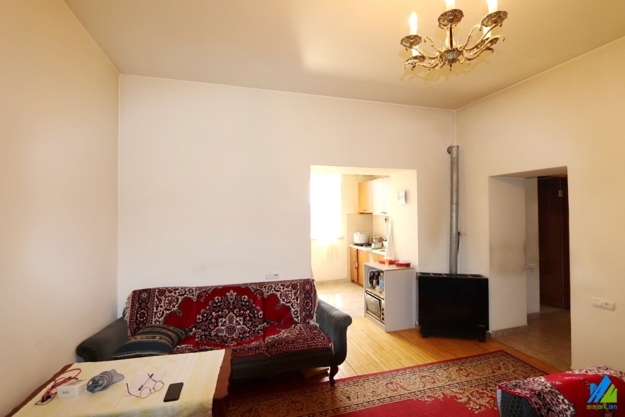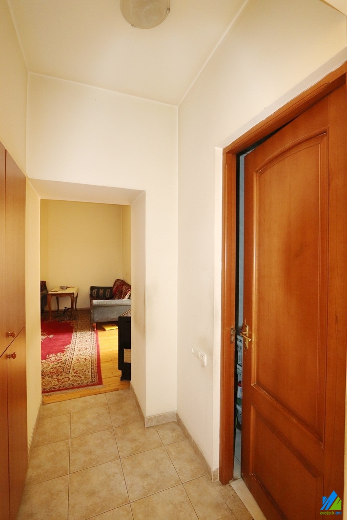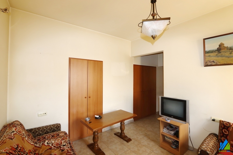 An apartment for sale in Baghramyan Avenue. The rooms' quantity is 2 ( a hall and a bedroom). The apartment is former newly renovated and is located on the high-rise ground floor of the 2-storey stone building, that is stationed on the 1st line. The entrance door is iron made, the windows are euro-based, the floor is covered by parquet. The bathroom is combined and tiled, the electric wires and pipes are newly changed. The apartment has a kitchen furniture, built-in closets and is supplied with constant water and gas. The entrance is from the yard. The view is directed towards the yard.