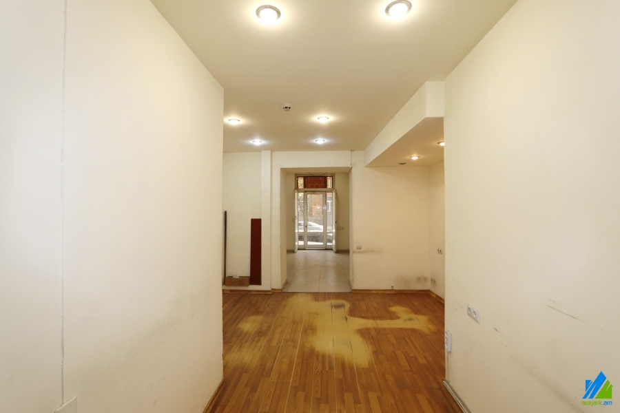 A commercial area for sale/rent on G. Nzhdeh street. The rooms' quantity is 2. The area is middle renovated and is located on the ground floor of the 5-storey stone building, which is stationed on the 1st line. The entrance door is glassed, the windows are euro-based, the floor is tiled. The electric wires and pipes are newly changed. The area has parking, showcases, tiled bathroom and is supplied with constant water. The entrance is from the street.
