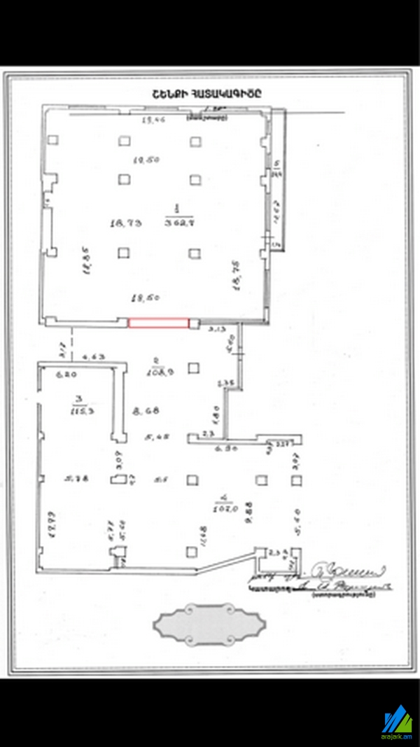 A commercial area for rent on Sayat-Nova Avenue. The area is newly renovated and is located on the ground floor of the 22-storey monolith building, which is stationed on the 1st line. The entrance door is glassed, the windows are euro-based, the floor is tiled. The electric wires and pipes are newly changed. The area has security and ventilation systems, 4 bathrooms, a hall (400 sq. M.), reception (40 sq. M.) and is supplied with constant water and gas. The area of building is 400 sq. M. The entrance is from the main entrance. The area can also be enlarged up to 1000 sq. M. In case of renting the entire area, the rent price will be 13$ for 1 sq. M.