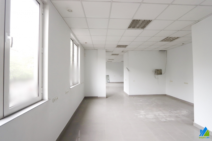 A commercial area for rent in Heratsi Street. The area is newly renovated and is located on the 2nd floor of the 3-storey stone building that is stationed in the 1st line. The entrance door and windows are euro-based, the floor is tiled. The bathroom is tiled, the electric wires are newly changed. The area has showcases, parking in the street and is supplied with constant water. The entrance is from the street. The rent price is 300.000 AMD. It is possible to rent with the 3rd floor (+140sq.m) for extra 800.000 AMD