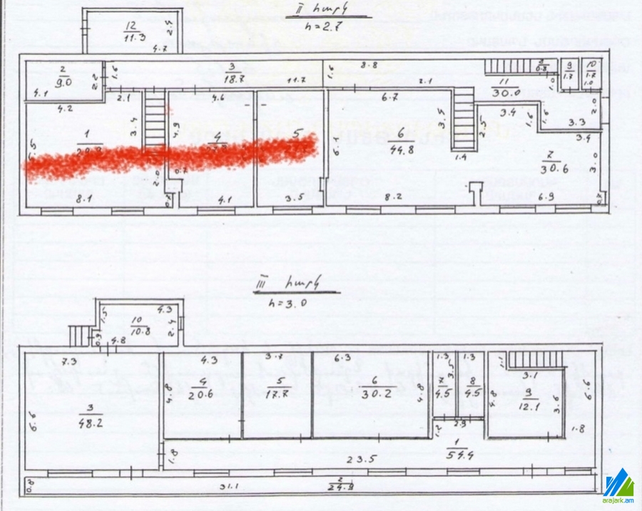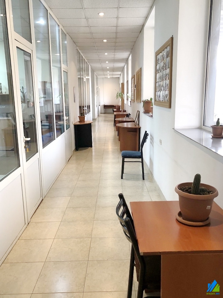 A commercial area for rent in Heratsi Street. The rooms' quantity is 5. The area is newly renovated and is located on the top floor of the 5-storey stone building that is stationed in the 1st line. The entrance door is made of glass, the windows are euro-based, the floor is tiled. The bathroom is tiled, the electric wires and pipes are newly changed. It has showcases, parking in the street and is supplied with constant water. The entrance is from the street. The length of the forehead of the building is 30m. The rent price is 800.000 AMD. It is possible to rent with the 2nd floor (+80sq.m) for extra 300.000 AMD.
