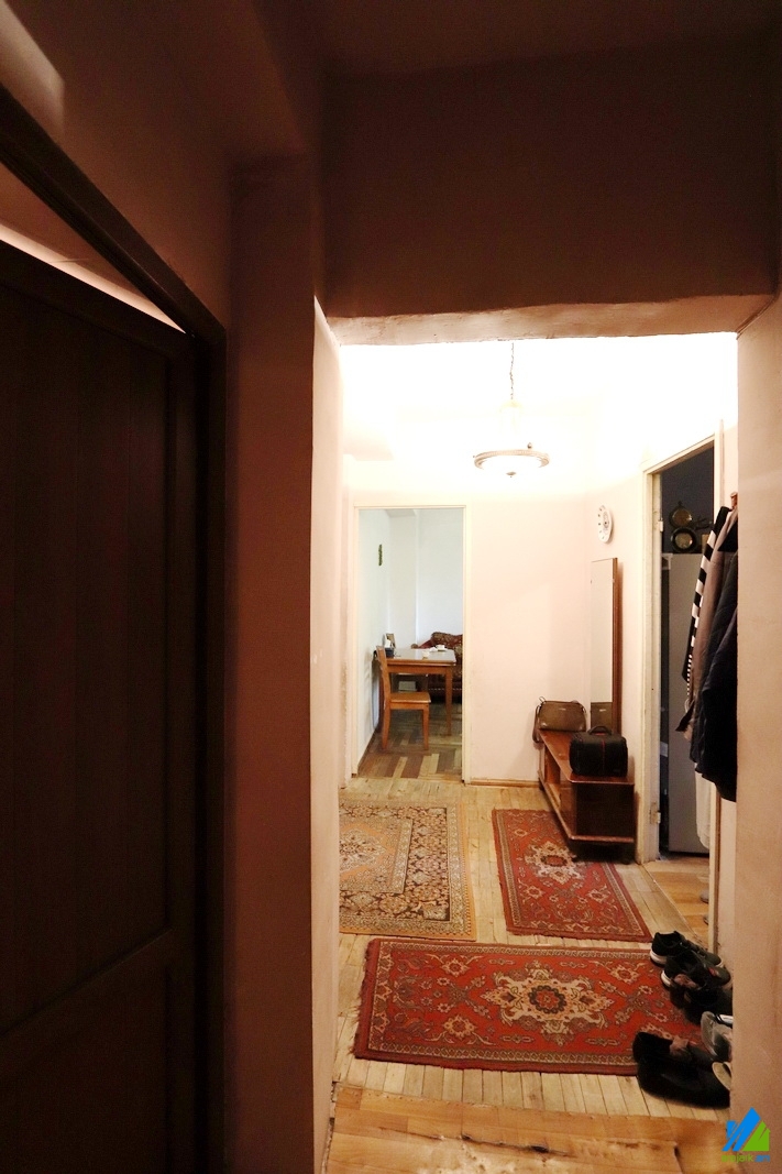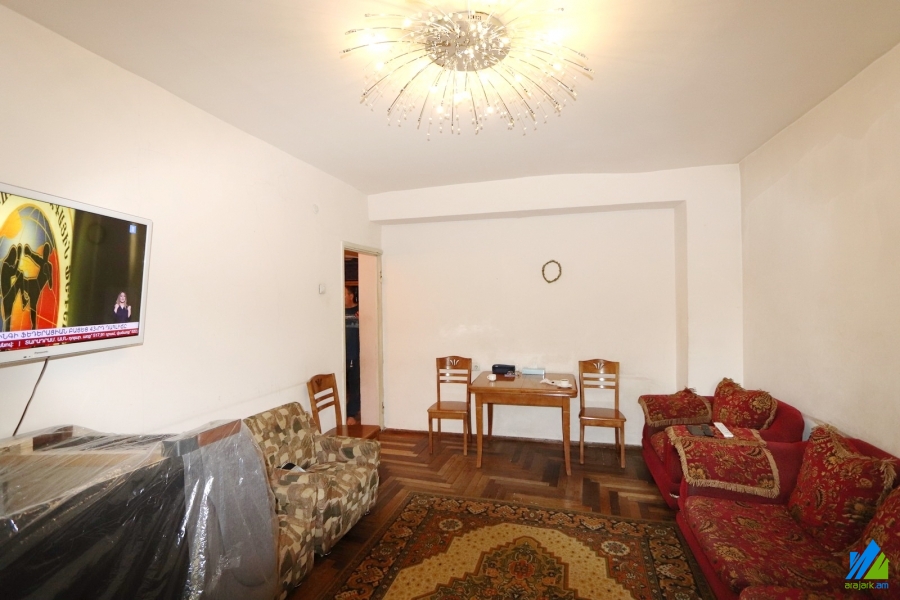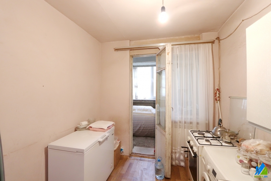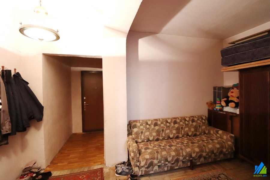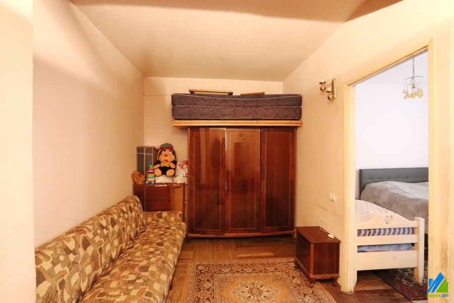 An apartment for sale in Er. Kochar Street. The rooms' quantity is 2 ( a hall and a bedroom). The apartment is in the state condition and is located on the 2nd floor of the 9-storey panel building. The entrance door is made of iron, the windows are euro-based, the floor is covered parquet and is tiled. The bathroom is combined and tiled, the electric wires and pipes are newly changed. The apartment has a balcony, storages (2), heating system and is supplied with constant water. The entrance is from the yard. The view is towards the yard.