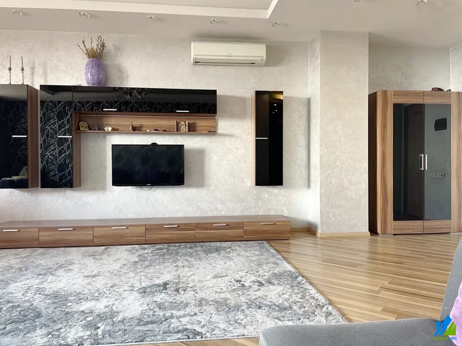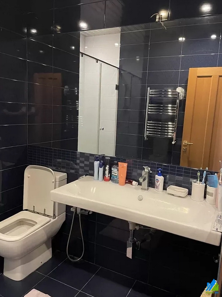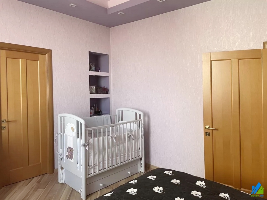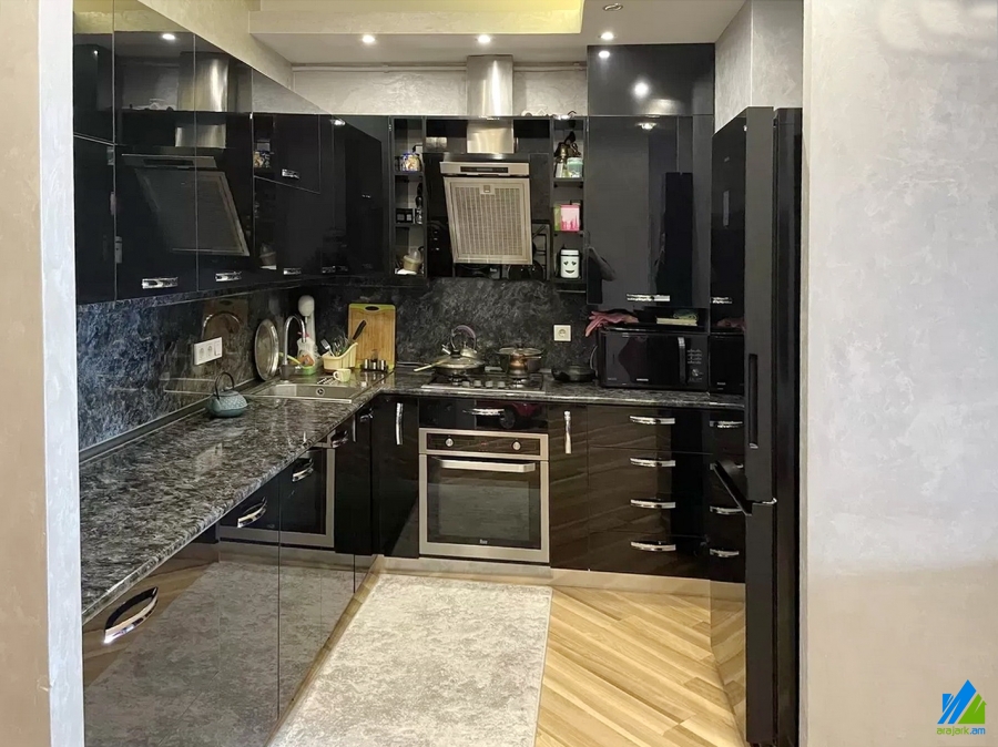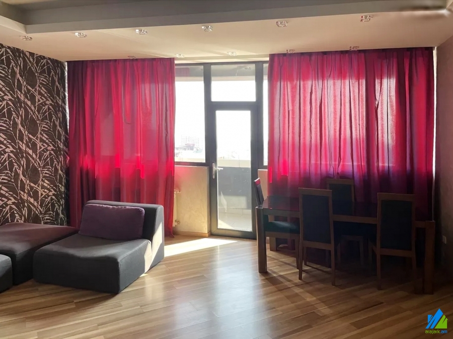 An apartment for sale on Keri Street. The rooms' quantity is 3 (a hall and 2 bedrooms). The apartment is newly renovated and is located on the 7th floor of the 19-storey monolith building, which is stationed on the 1st line. The entrance door is iron-made, the windows are euro-based, the floor is covered by laminate. The bathroom is combined and modern tiled. The apartement has parking for 2 cars, heating system, air-conditioner and is supplied with constant water and gas. The building has a swimming pool, gym, tennis field, summer pavilion. The entrance is from the yard. The view is towards Hrazdan Gorge and Mount Ararat. The apartment is being sold along with fruniture and electronic devices.