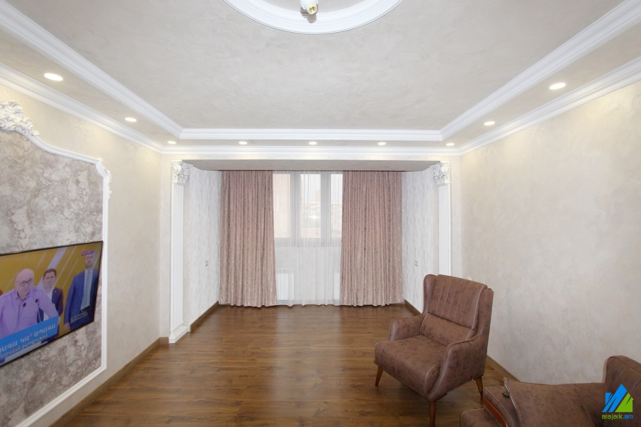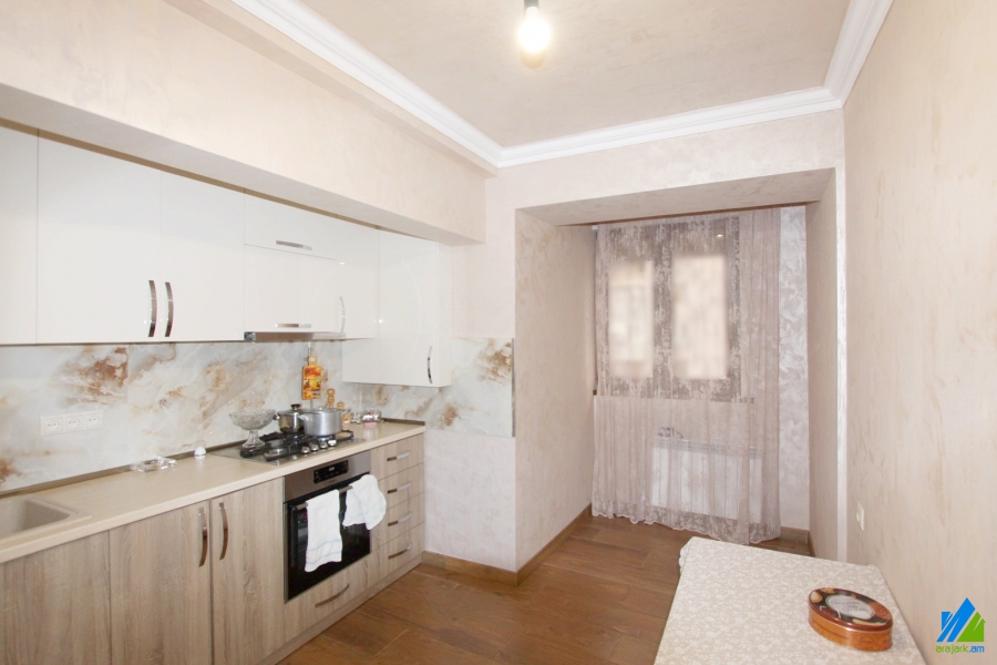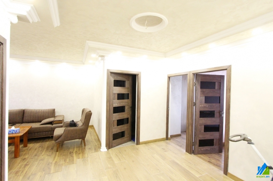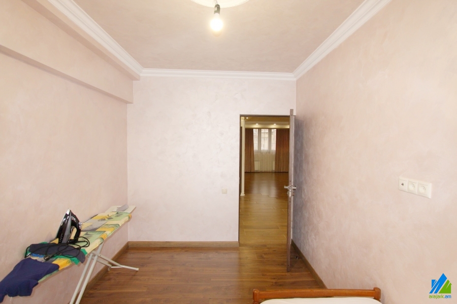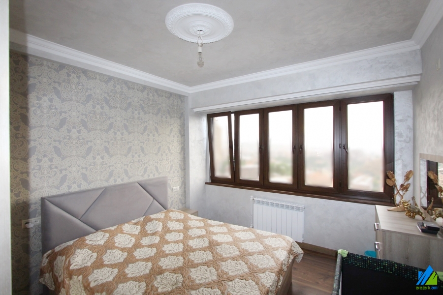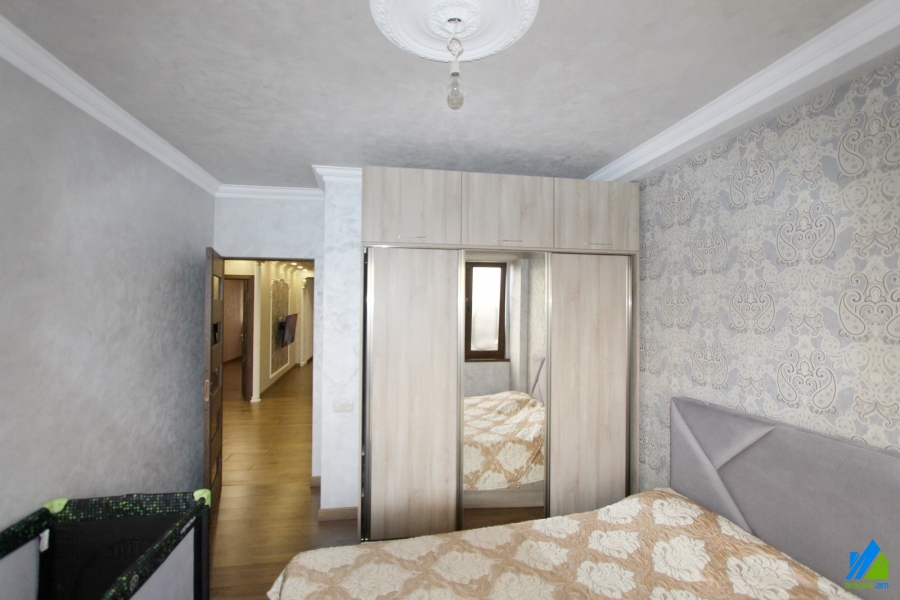 An apartment for sale in Orbeli street. The rooms’ quantity is 3 (1 hall and 2 bedrooms). The apartment is newly renovated and is located on the 9-th floor of 10-storey panel building, that is stationed in the 1-st line. The entrance door is iron-made, the windows are euro-based, the floor is covered by laminate and solid granite. The bathroom is combined and modern tiled, the electric wires and pipes are newly changed. It has a built-in closet, heating system and is supplied with constant water and gas.