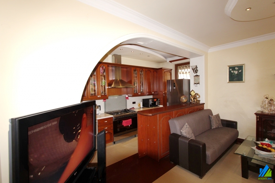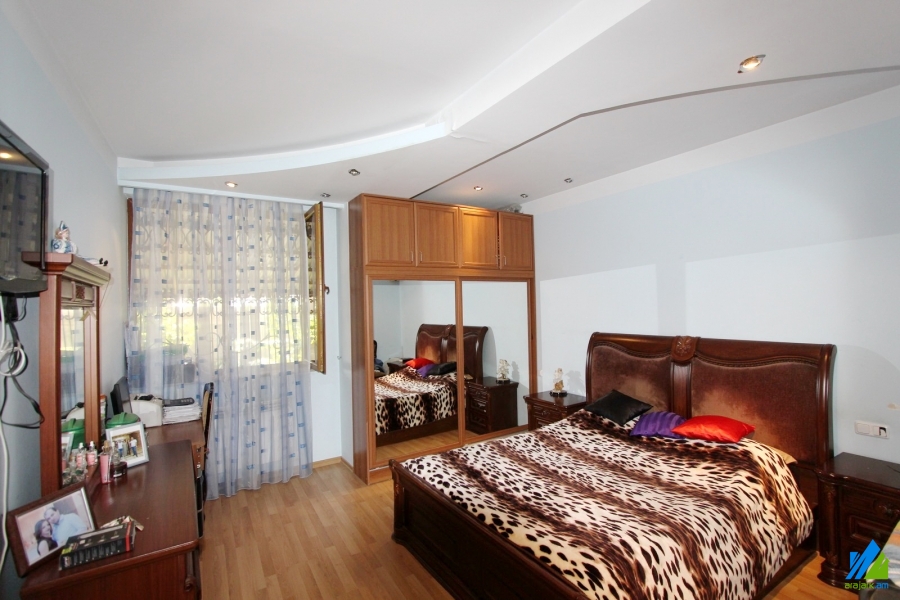 3-storey house for sale in Bryusov Street. The rooms' quantity is 6. There are 2 houses in 450sq.m. The 1st house is 95.6sq.m, the 2nd is 68.8sq.m. Both houses are newly renovated. The entrance doors are made of iron, the windows are euro-based, the floors are covered by laminate and are tiled. The bathrooms are combined, separate and tiled, the electric wires and pipes are newly changed. One of the houses has a cellar. Both houses have heating system, nice yard and are supplied with constant water and gas.
