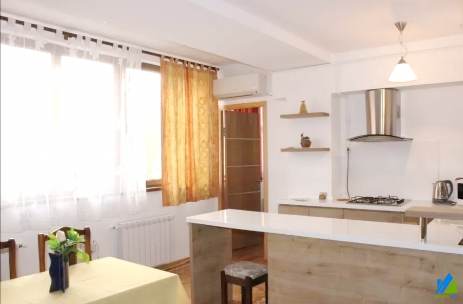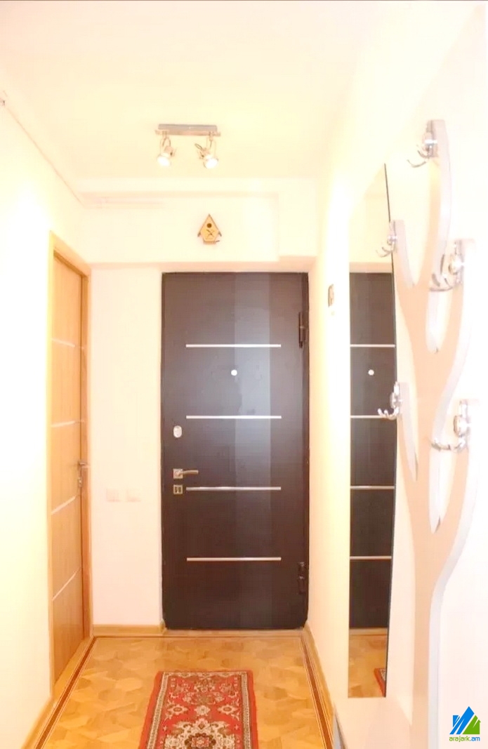 An apartment for sale or for rent in Sayat-Nova Avenue. The rooms' quantity is 2 ( a hall and a bedroom). The apartment is newly renovated and is located on the 3rd floor of the 11-storey panel building that is stationed in the 1st line. The entrance door is made of iron, the windows are euro-based, the floor is covered by parquet. The bathroom is combined and tiled, the electric wires and pipes are newly changed. It has a heating system and is supplied with constant water and gas. The apartment is being sold with furniture. The rent price is 260.000 AMD.