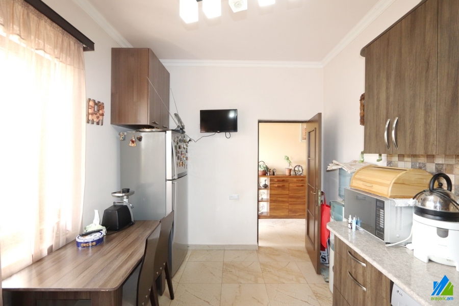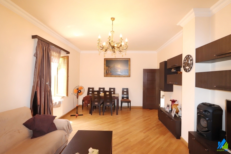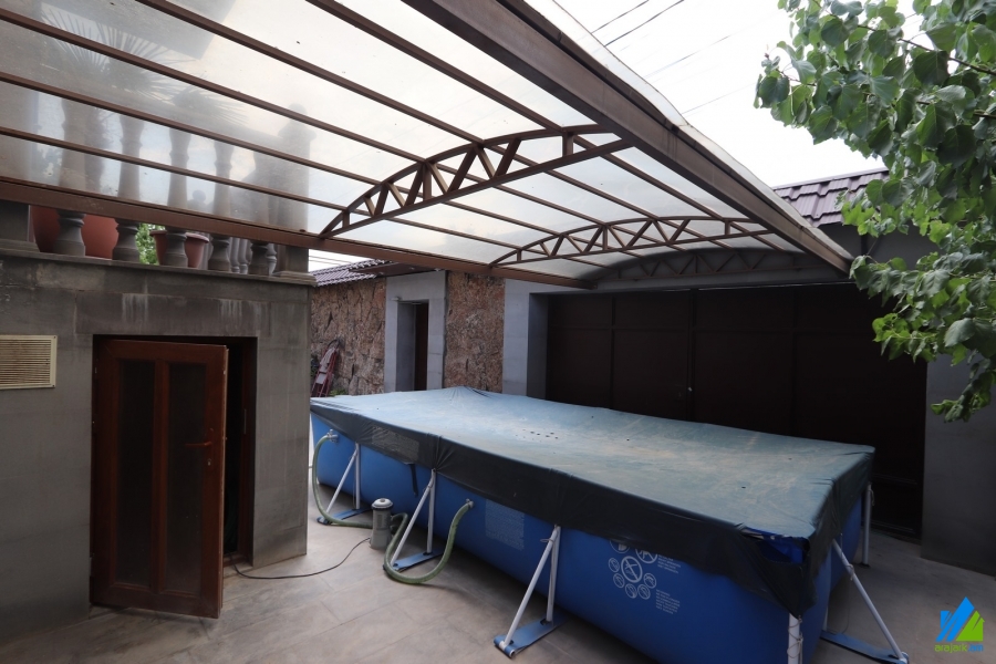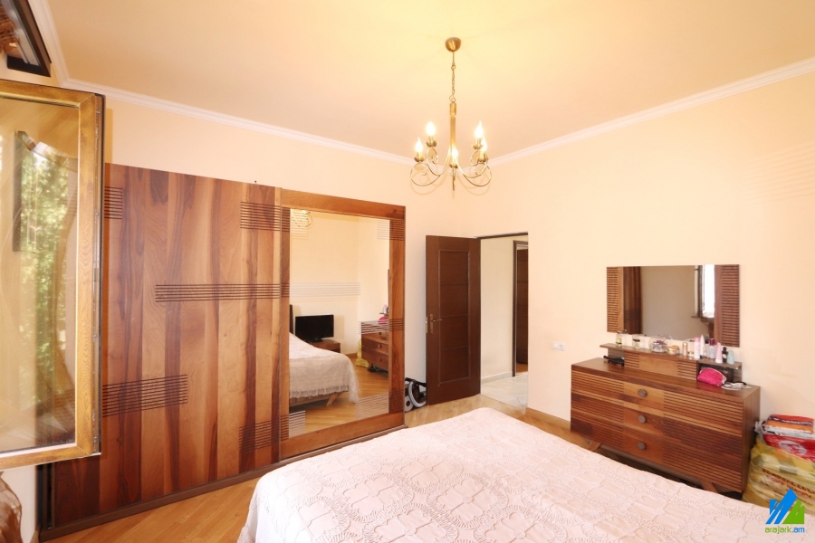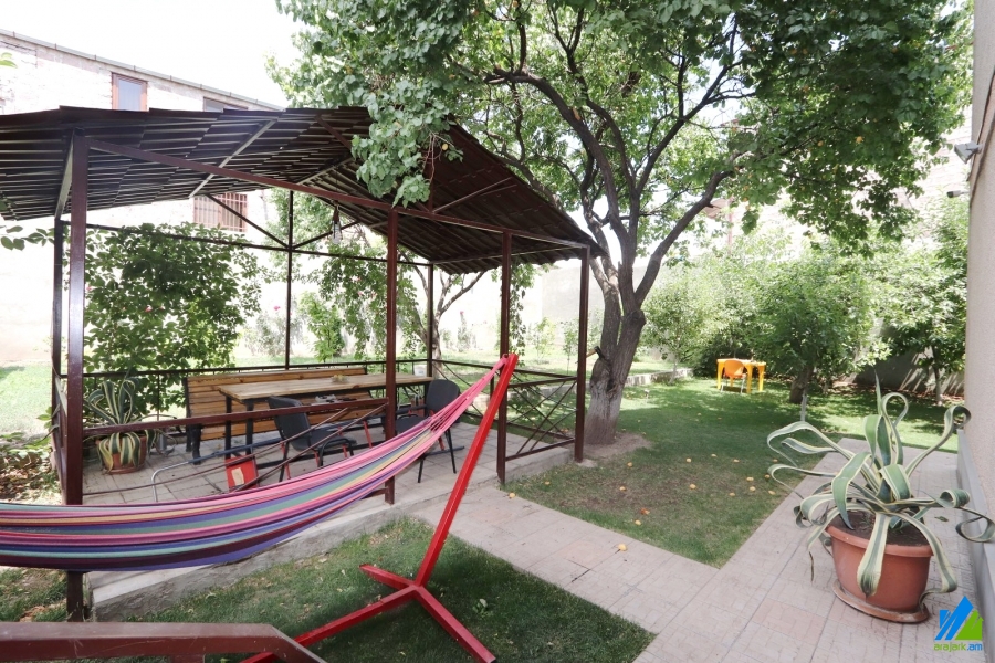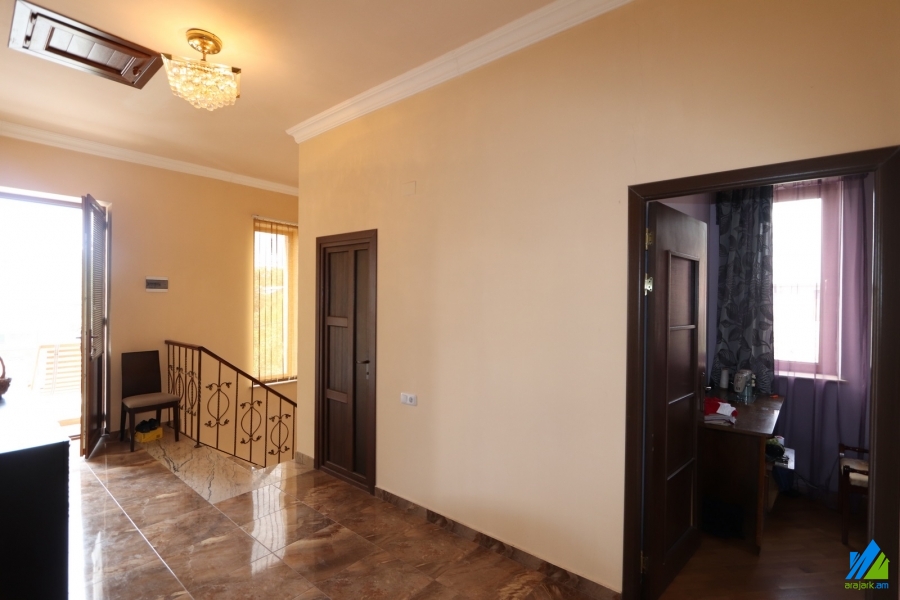 3-storey house for sale at the beginning of Zovuni. The rooms' quantity is 6. The house is newly renovated and is stationed in the 1st line. The entrance door is iron-made, the windows are euro-based, the floor is covered by parquet, solid granite. The bathrooms (2) are combined and modern tiled, the electric wires and pipes are newly changed. The house has a cellar, stone garage (55sq.m), balcony, landscaped yard, kitchen furniture, heating system and is supplied with constant water and gas. It has a security cameras, 500 liter water tank, parking for 4 cars. The house is also being sold with furniture for additional payment.