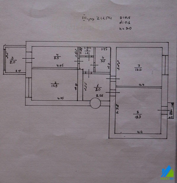 An apartment for sale in Tolbukhin street. The rooms quantity is 3 (a hall and 2 bedrooms). The apartment is partially newly renovated and is located on the top floor of 3-storey stone building, that is stationed in the 1-st line. The entrance door is iron-made, the windows are euro-based, the floor is covered by parquet and is tiled. The bathroom is separate and former tiled, the electric wires and pipes are newly changed, the roof is repaired. The apartment has 2 balconies, kitchen furniture, built-in closets, storage room (in the entrance), cellar(15 sq.m.), heating system and is supplied with constant water and gas. The entrance is from the yard and renovated.