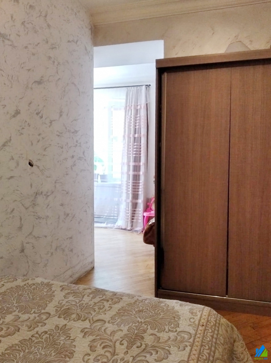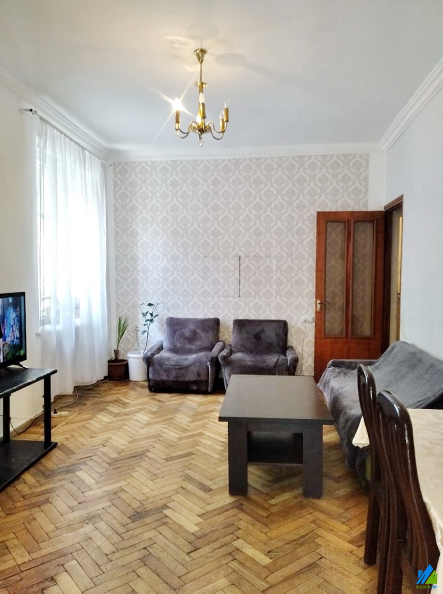 An apartment for sale in Azatutyan Avenue. The rooms' quantity is 2 ( 2 room remodeled into 3, which includes a hall and 2 bedrooms). The apartment is cosmetically renovated and is located on the 1st floor of the 6-storey stone building, that is stationed in the 1st line. The entrance door is iron-made, the windows are euro-based, the floor is covered by parquet. The bathroom is combined, the electric wires and pipes are newly changed. The apartment is supplied with constant water and gas.
